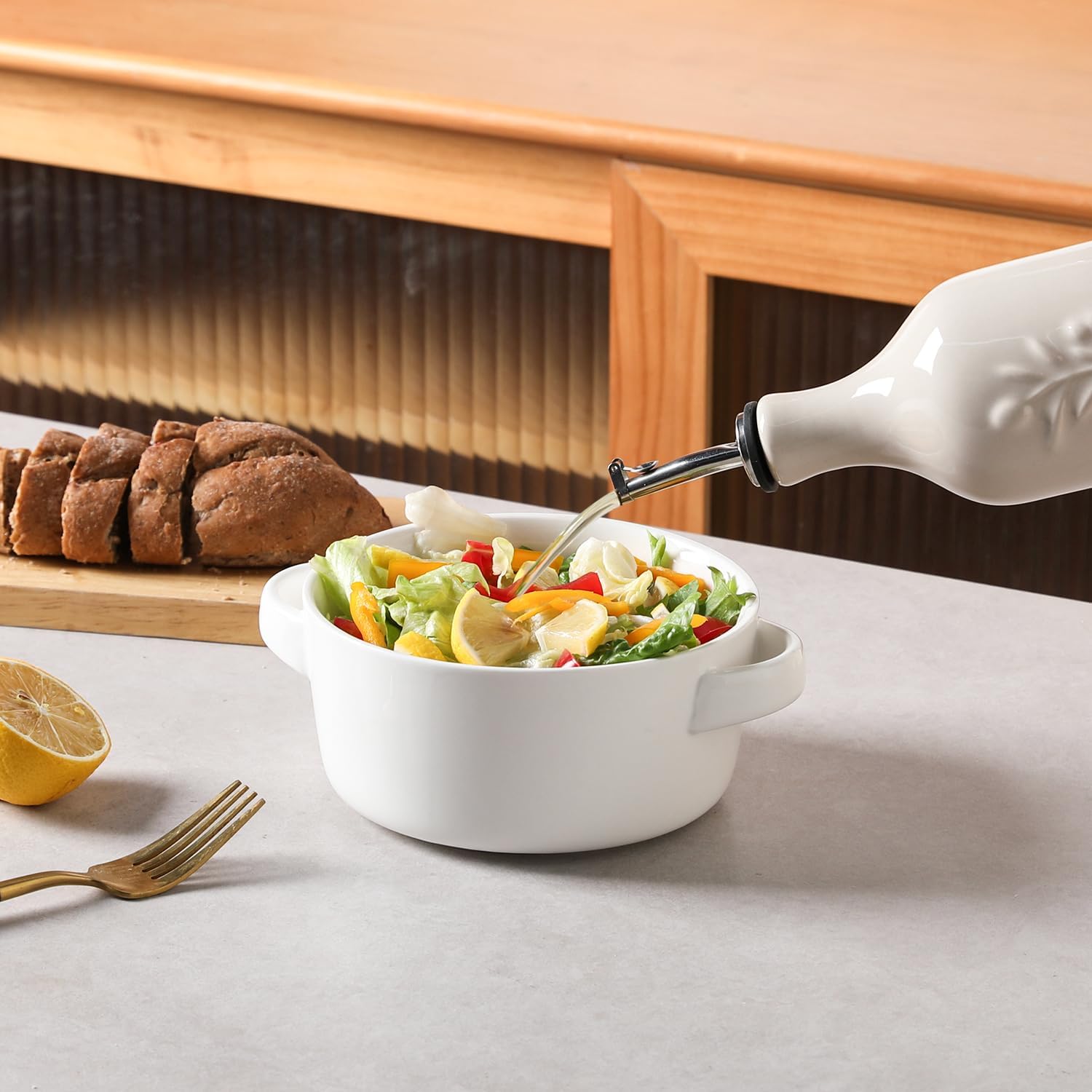 - Durable and Precise Pouring Control - The olive oil bottle fired at high temperatures, to form a smooth glazed surface, strength and durability. The carefully designed spout that allows for easy pouring without any messy drips or spills.
