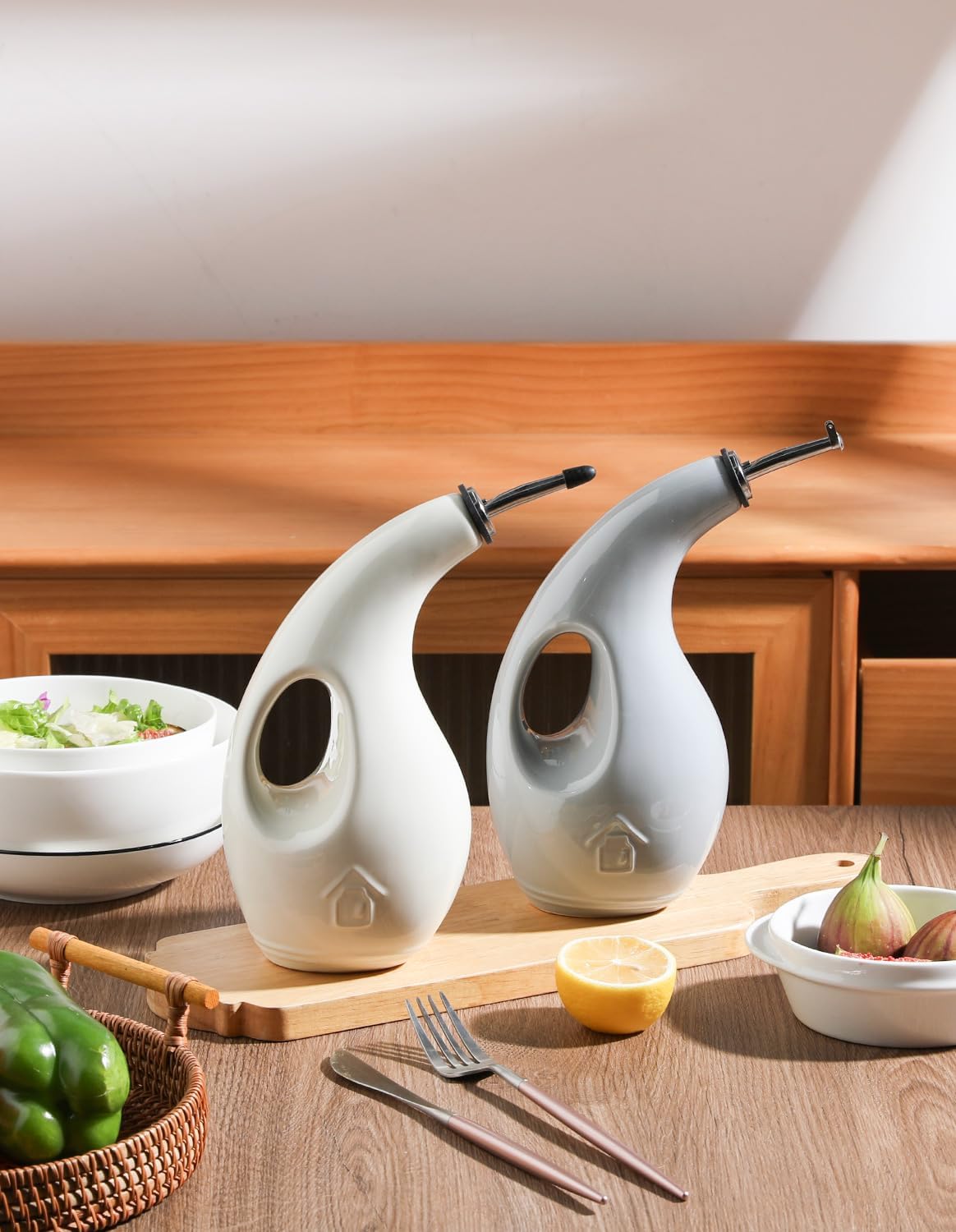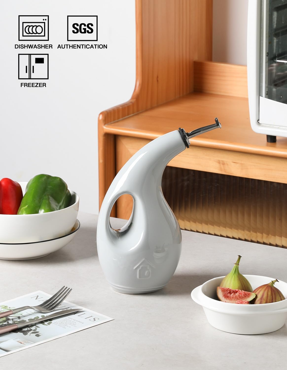 Sweejar Ceramic Olive Oil Dispenser Bottle,24 Oz Opaque Cruet Protects EVOO Oil to Reduce Oxidation, Suitable for Storage Vinegar, Coffee Syrups, Liquids (Gray)