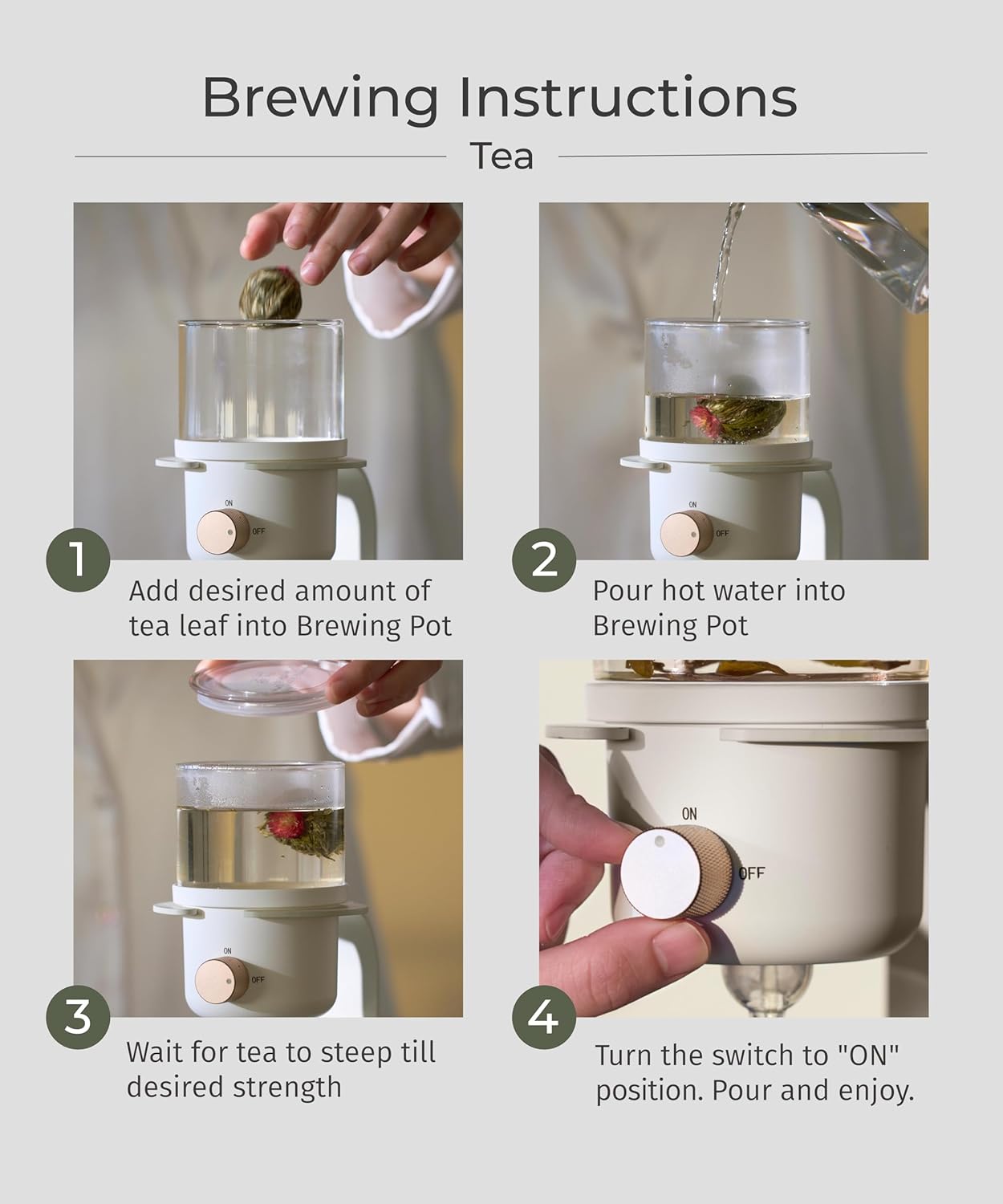 - Switch Controlled for Custom Brews: Turn the dial to start or pause water flow, customizing steeping time. Whether you crave a delicate loose leaf tea or a bold espresso like coffee, this feature ensures your drink matches your taste with ease