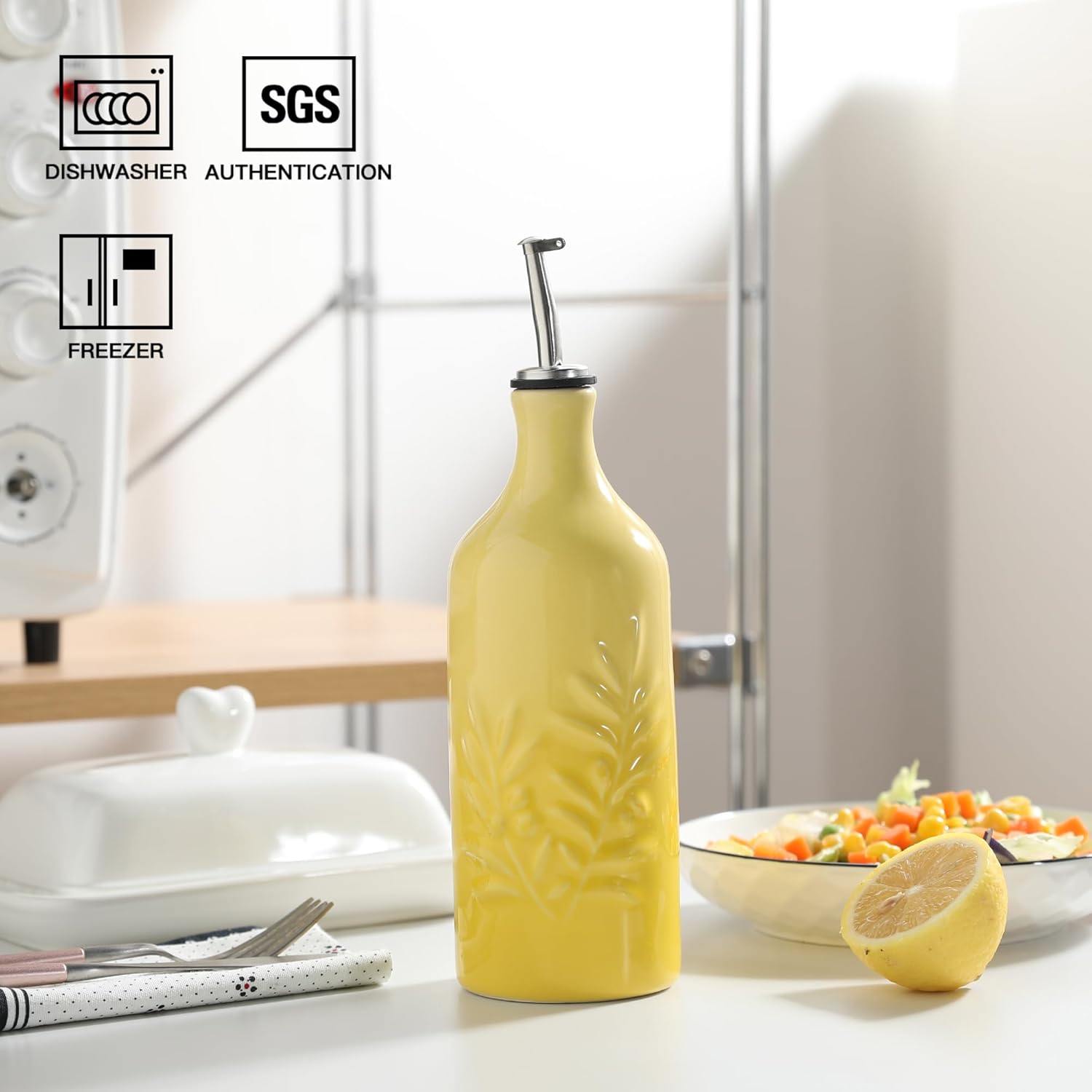 Sweejar Ceramic Olive Oil Dispenser Bottle, 20 Oz Relief Opaque Oil Cruet Protects To Reduce Oxidation, Suitable for Storage Soy Sauce, Coffee Syrup, Liquids, Set of 1 (Gradient Yellow)
