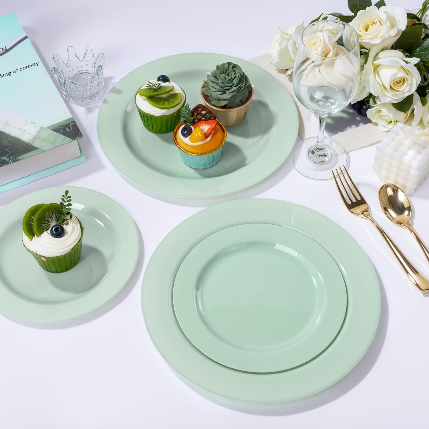 - THE PERFECT SUBSTITUTE: These sage green disposable plates will not bend as easily as paper plates or break as easily as ceramic plates. As perfect replacement for paper and ceramics, these sage green plastic plates are used in Birthday ,Party,and other occasions.