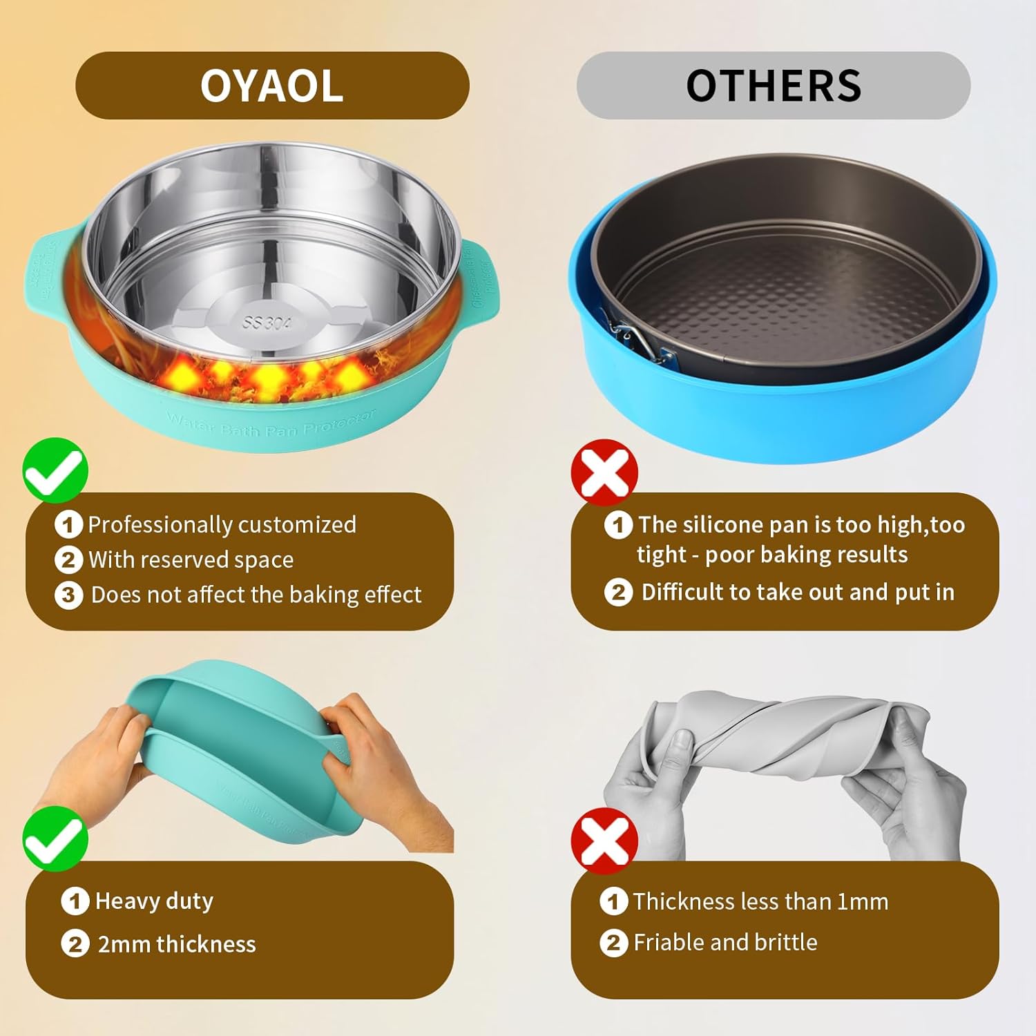 - Durable Thickened Design: Made from high-quality food-grade silicone, OYAOL thickened springform pan protector ensures a mess-free cheesecake water bath with no foil required. Reusable and easy to clean, it doubles as a water trap and baking support for 9 Inch springform cake pans