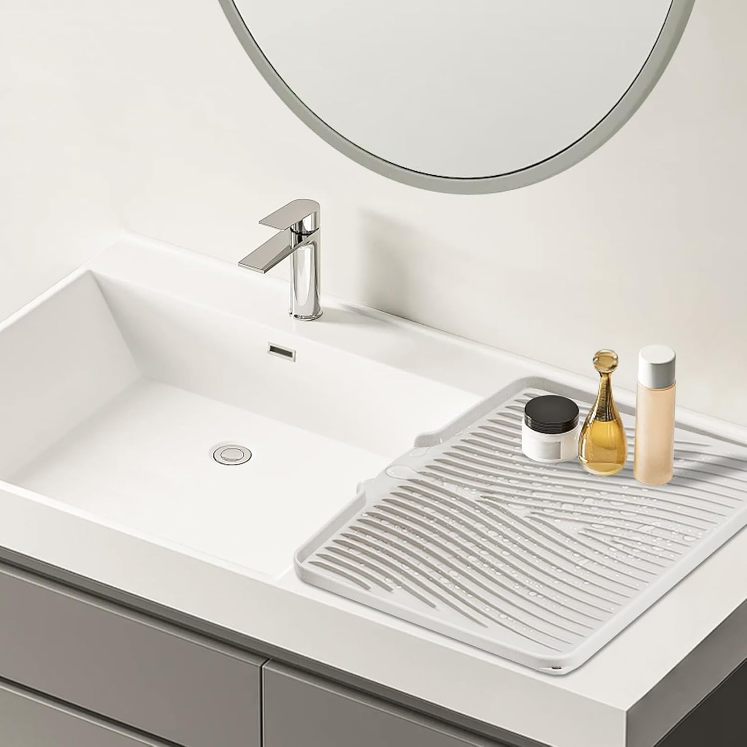 Silicone Dish Drying Mat, Stone Drying Mat for Kitchen Counter with Built-In Drain, Non-Slip Drain Pad with Built-in Drain, Heat Resistant Stone Drying Mat, 1Pcs 19.7" x 17", Cream
