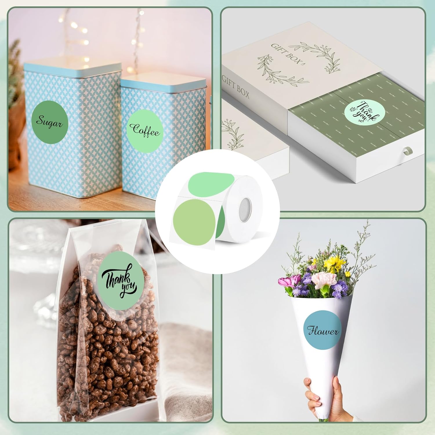 Thermal Label,2 Inch Green Gradient Round Thermal Printer Stickers,Self-Adhesive Round Direct Thermal Labels,Thermal Stickers for DIY Logo Design,Name Tag (500 Labels/1 Roll)