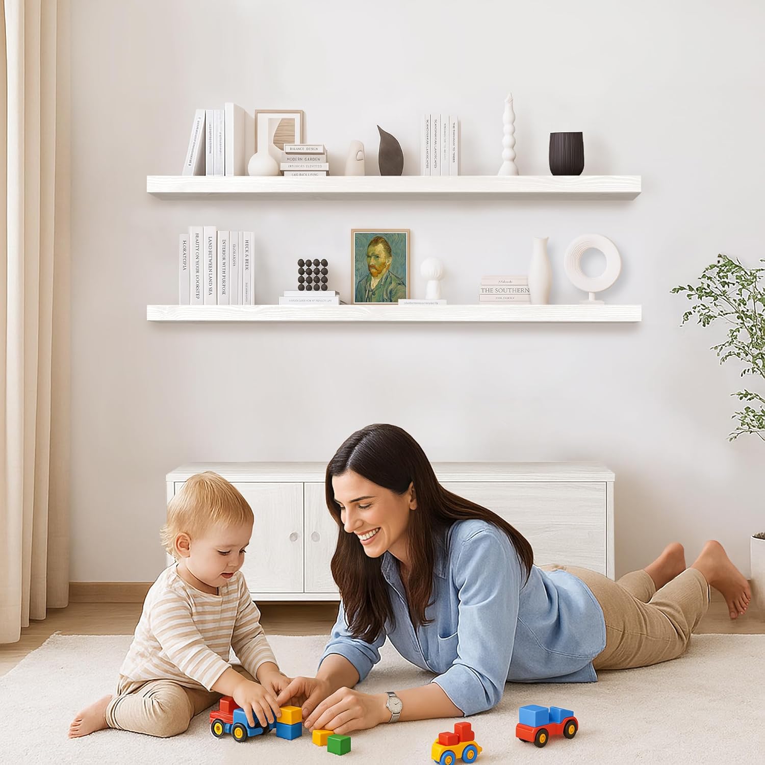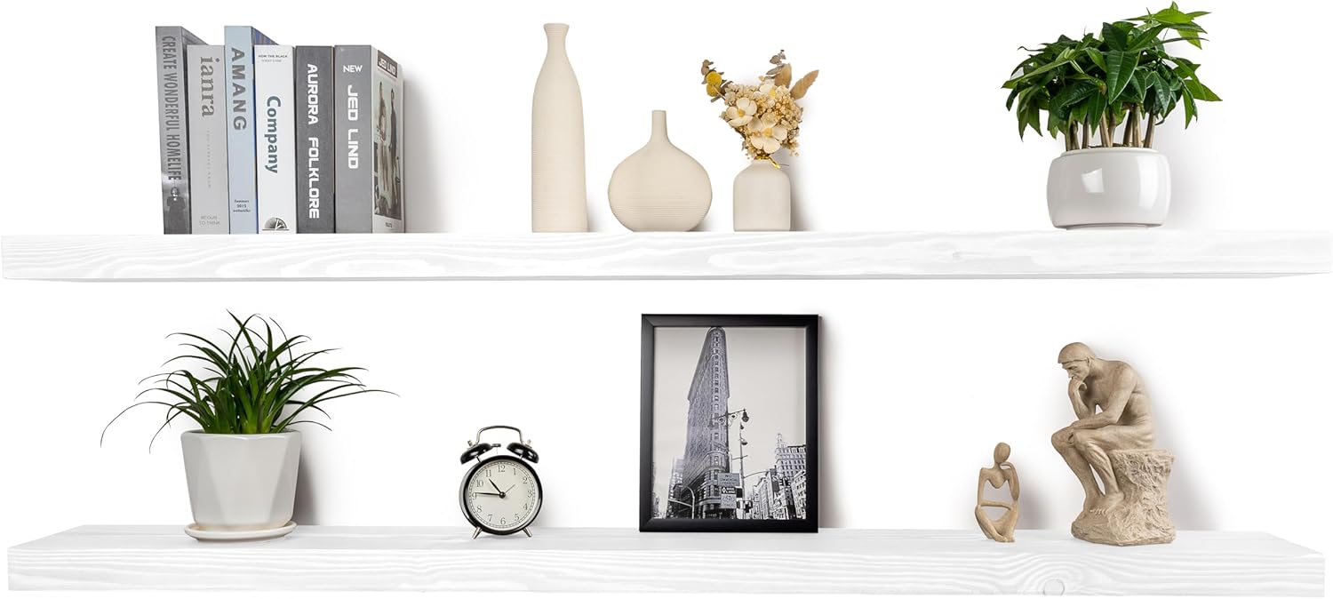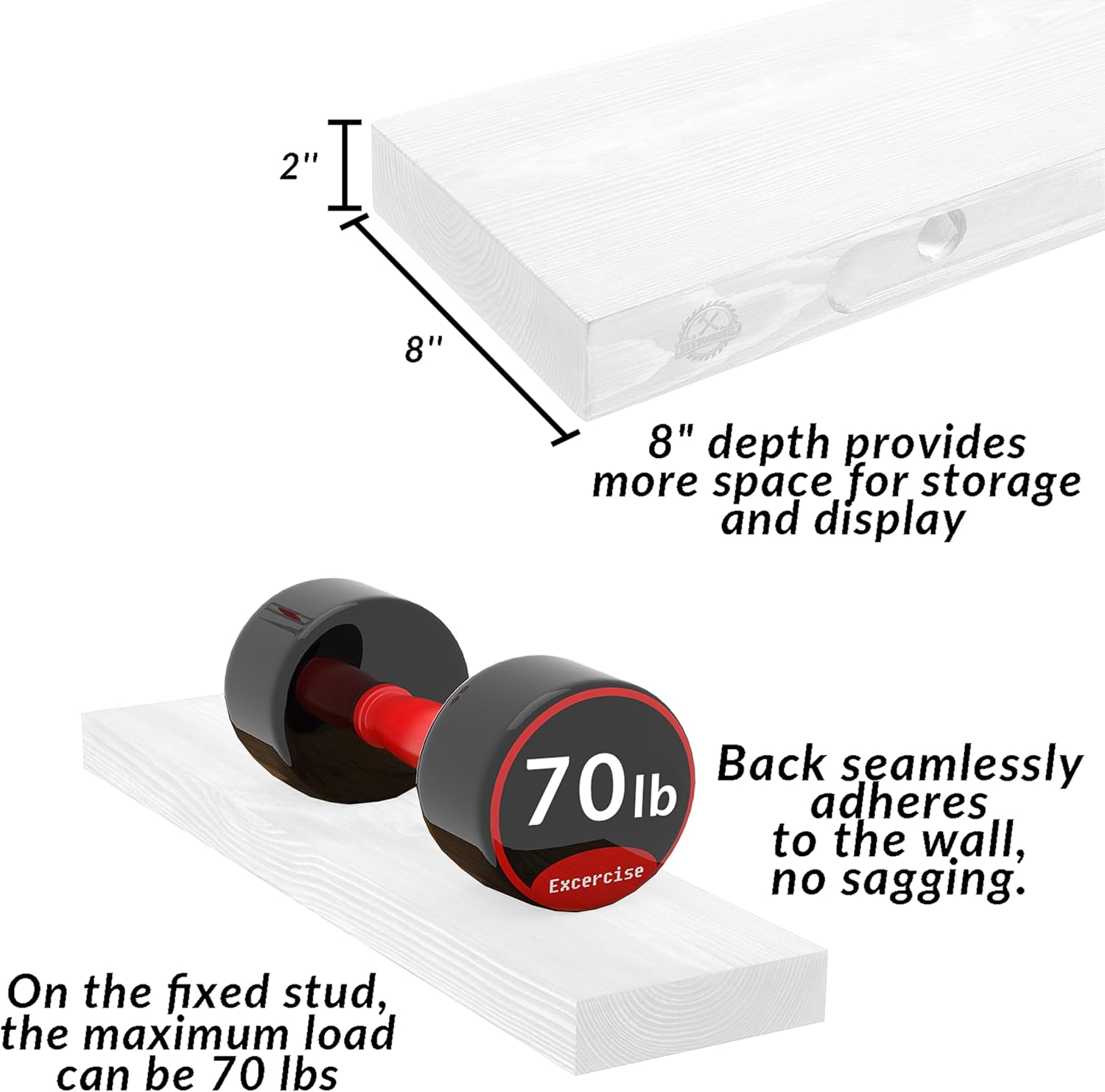 Rustic Floating Shelves 72 inch Long 8 "deep Set of 2, Heavy Duty Wood Wall Mounted Shelves for Bathroom Living Room Kitchen,Book Shelves with Thickened Hidden Bracket- White