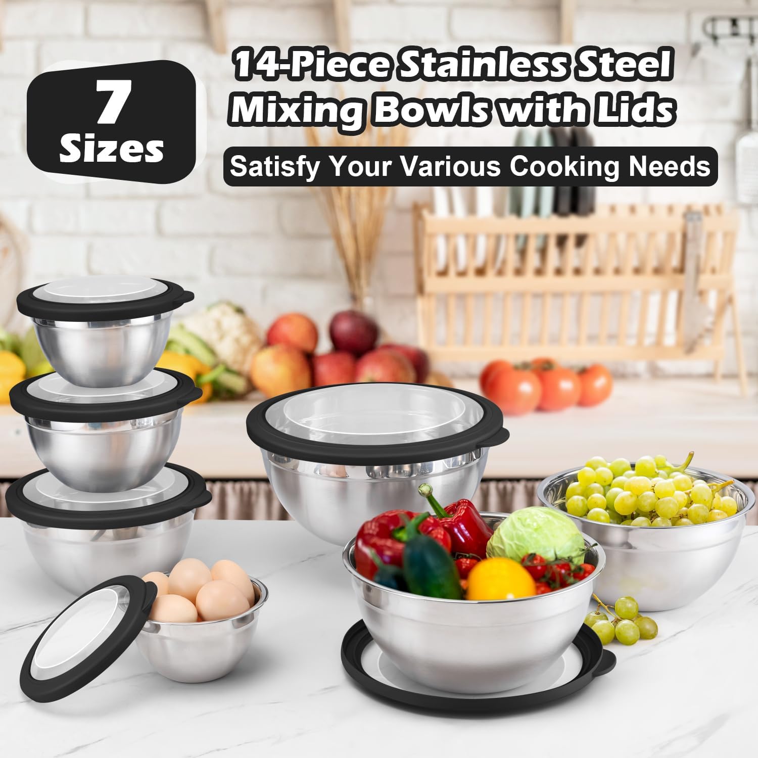 - VERSATILE FOR ALL YOUR KITCHEN NEEDS: Multiple sizes for a wide range of tasks, Such as mixing salads, whipping cream, kneading dough, washing vegetables, storing leftovers and marinating meat, Perfect for meal preparing, baking, cooking, serving and storing, Wonderful gift for Christmas, Thanksgiving Day, housewarming and other holidays