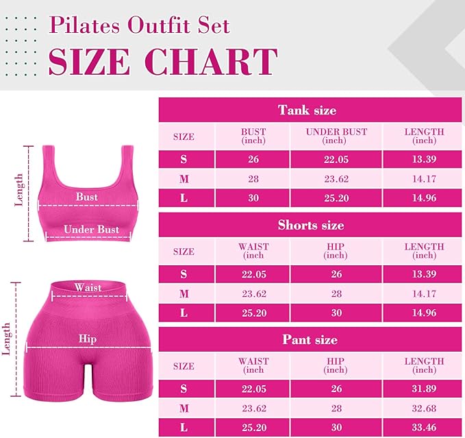 - Comfort and Fit: size and fit can impact the comfort and overall experience of your workout; This fitness sets for women is crafted considering diverse body types and fitness levels, conforms to your movements, ensuring you're comfortable as you engage in your Pilates routine