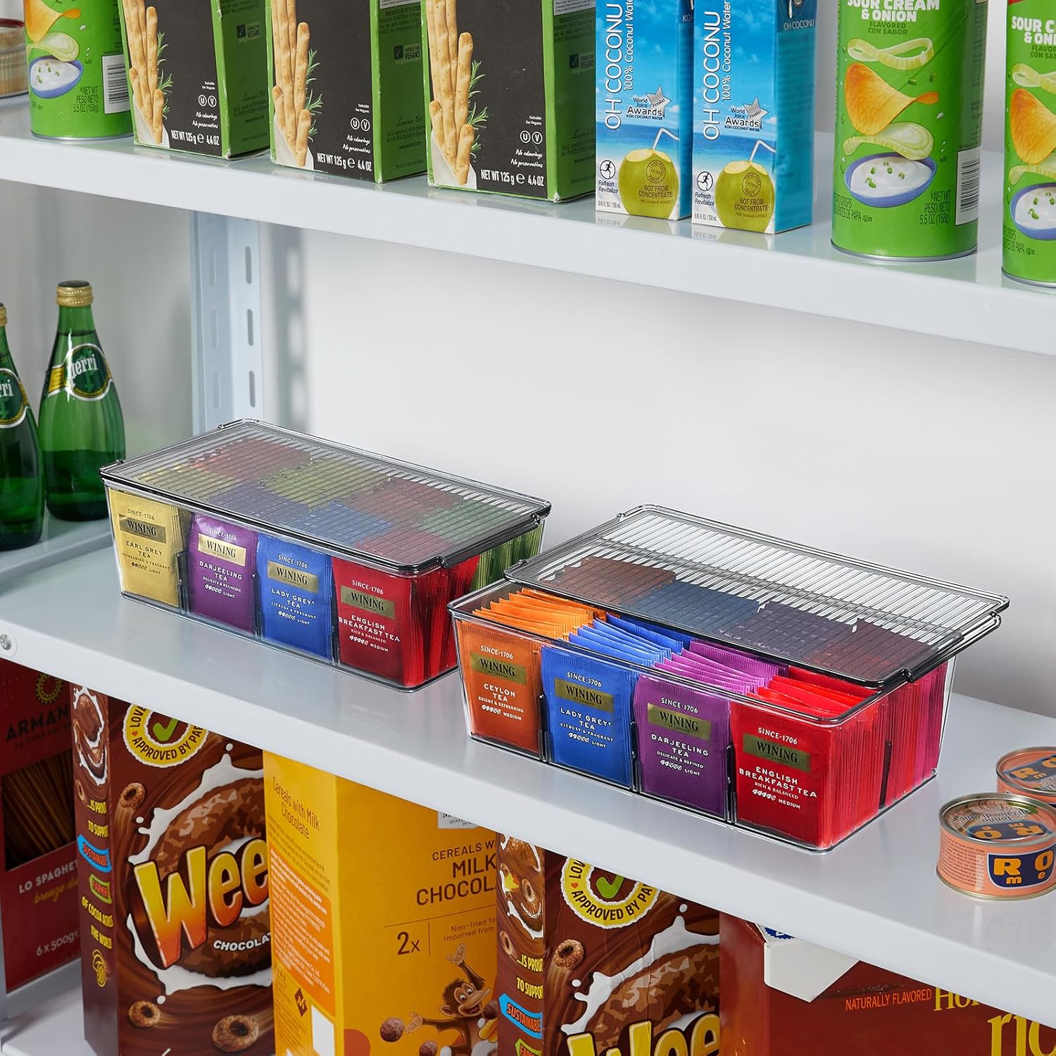 - Customized Storage: The tea organizer comes with 4 removable divided sheets in each tea bag storage box, when installing, place the long board first, and then place the short board. Allows you to customize the storage space.