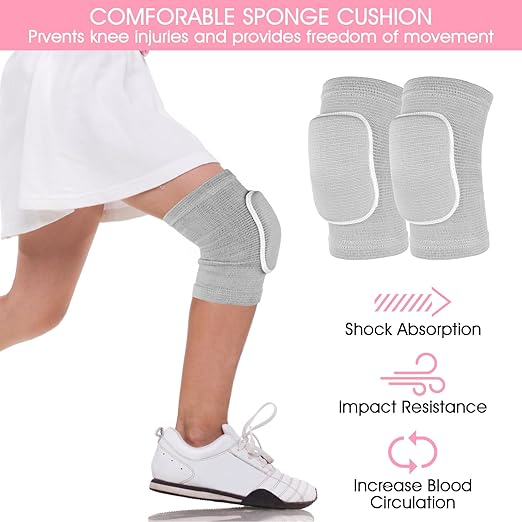 Knee Pads for Kids Suit for Age 7-12 Years, Wrestling Knee Pads Volleyball Knee Pads Thick Sponge Youth Girls Anit-Slip Sport Knee Support Brace for Volleyball Dance Yoga Running Climbing Grey