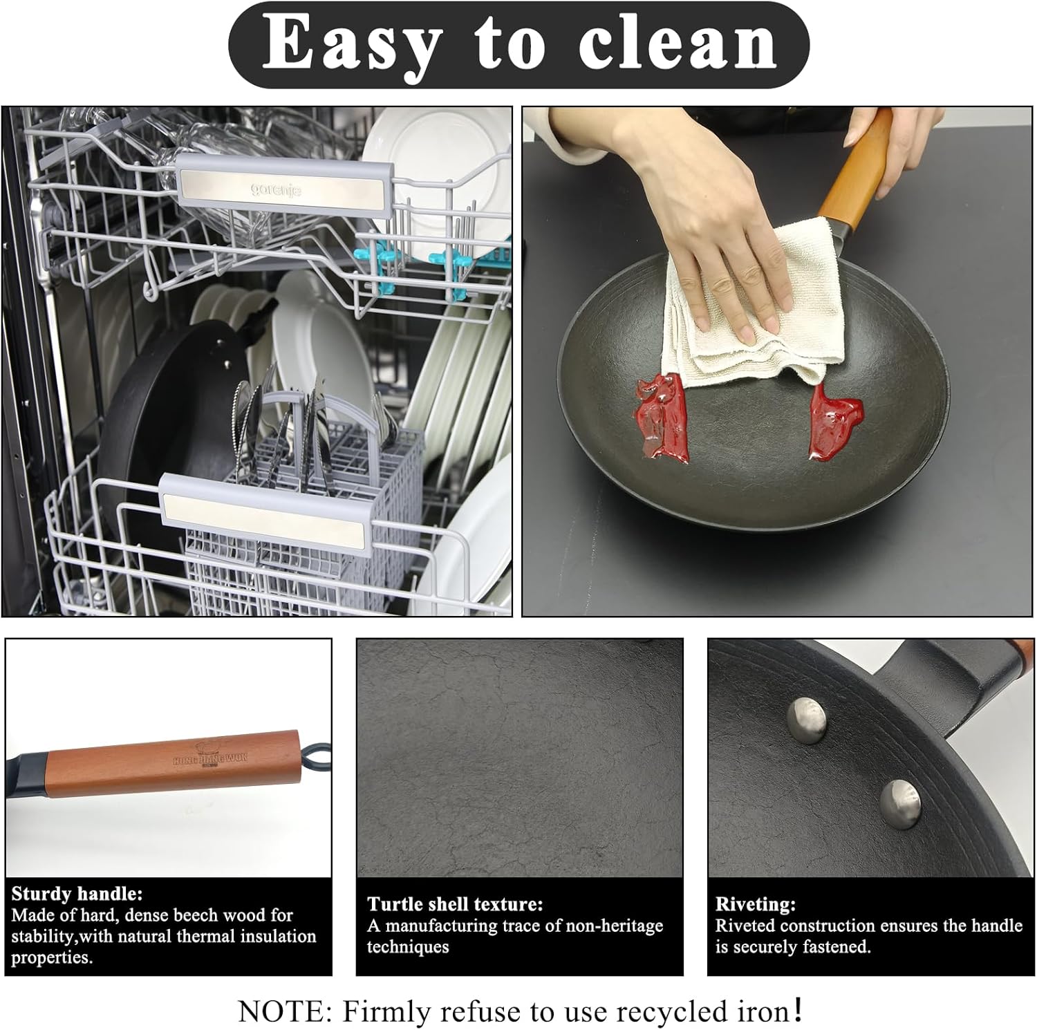 - No Coating, Just Pure Iron – Durable, Scratch-Resistant Made from 100% virgin pig iron with no enamel or chemical coatings. Withstands high heat, and works well with metal utensils. Unlike coated pans, our cast iron omelette pan won’t peel or chip—it's scratch-resistant ironware built to last generations, just like a traditional wok in a Chinese home