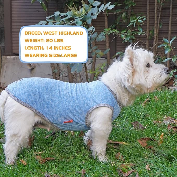 KYEESE 2 Pack Dog Shirts Quick Dry Soft Stretchy Dog T-Shirts with Reflective Label Tank Top Sleeveless Vest Sun Protection Pet Clothes for Large Pet, Large, Light Blue+Grey