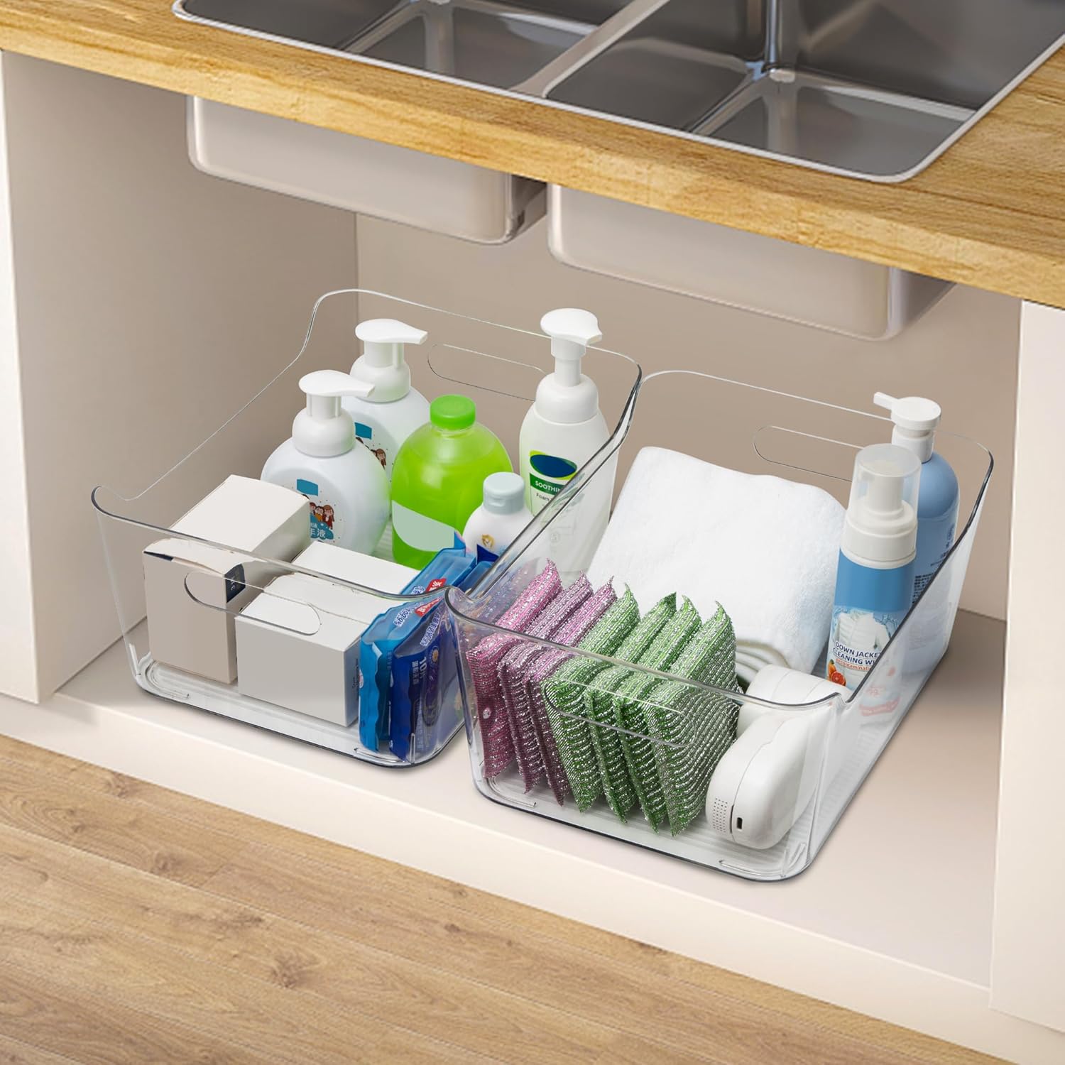 Tiawudi 2 Pack Plastic Storage Bins, Extra Large Pantry Organizer, 13.5" x 10" Clear Storage Containers and Organizer Bins, Multi-Use Bins for Home, Kitchen, Closet and Cabinet