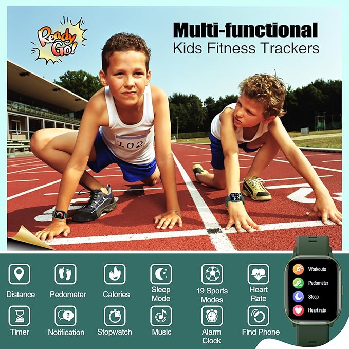- 【19 Sports Modes & IP68 waterproof】Our kids activity tracker is designed with 19 outdoor sports and fitness modes like running, cycling, basketball, tennis, etc. Children can record more accurate and detailed sports data according to their own sports conditions.Perfect birthday gift for kids who enjoy sports and outdoor activities