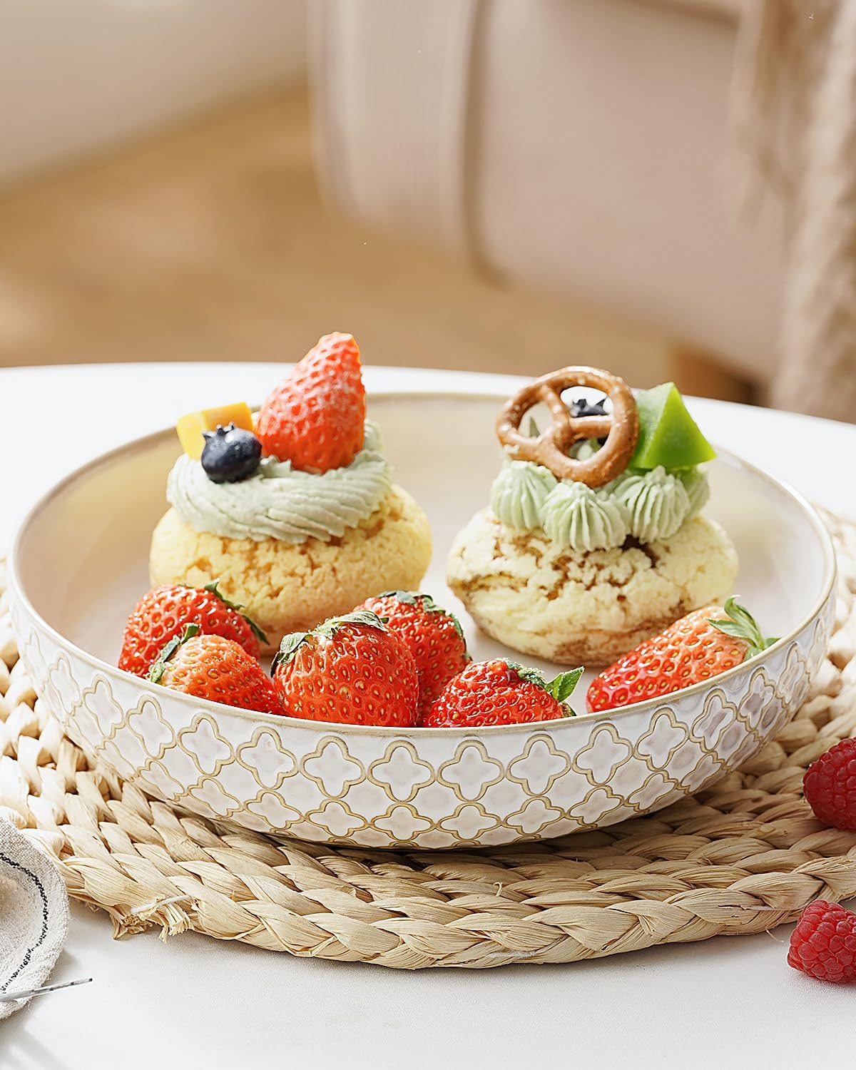 - [Farmhouse Kitchen Plate Bowls] Featuring four distinct embossed patterns in warm, farmhouse earthy hues, the ceramic bowl set adds rustic charm to your table for everyday meals and special occasions
