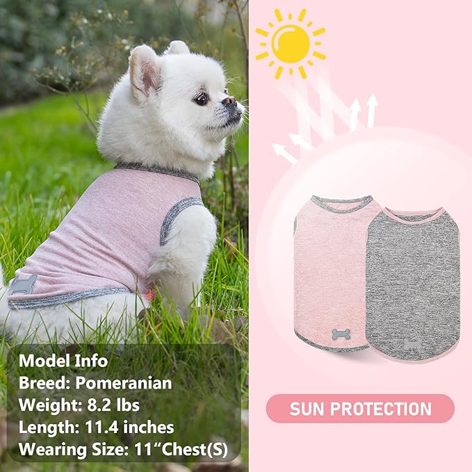 KYEESE 2Pack Dog Shirts Sun Protection Puppy T Shirt Pet Clothes Quick Dry for Small Dog with Reflective Label Soft Tank Top Sleeveless Pet Vest Puppy Clothes, Small