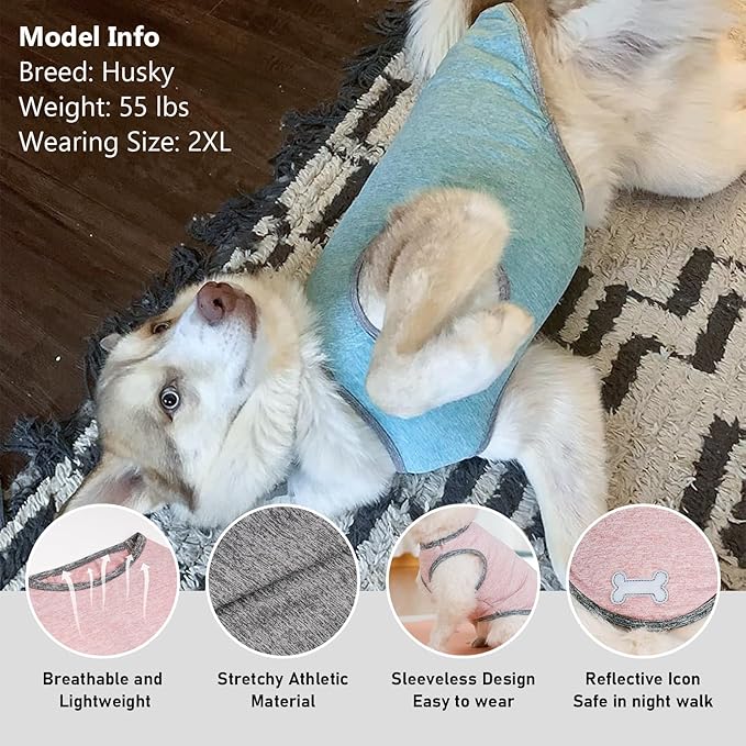 KYEESE 2Pack Dog Shirts with Reflective Label Sun Protection Quick Dry Soft Tank Top Stretchy Sleeveless Lightweight Dog Clothes, XX-Large
