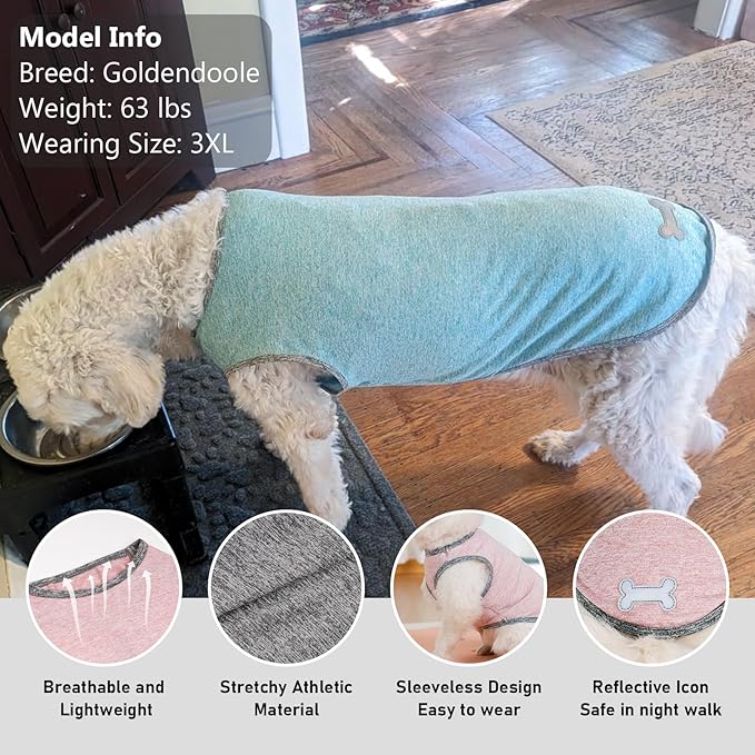KYEESE 2Pack Dog Shirts Sun Protection Quick Dry Dog T Shirt Soft Tank Top with Reflective Label Stretchy Sleeveless Pet Vest Lightweight Pet Clothes, XXX-Large