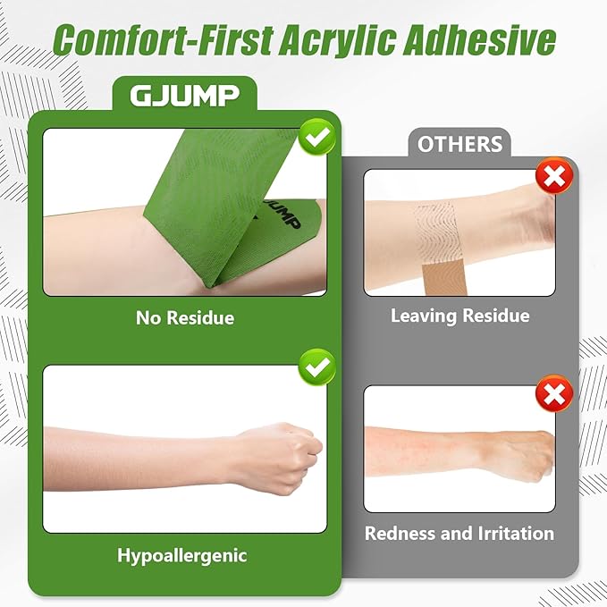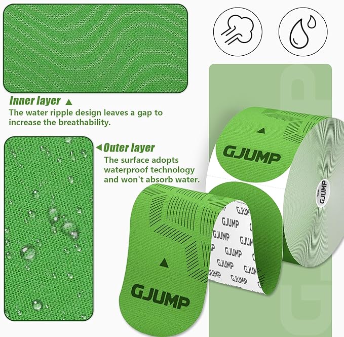 • Relieve Fatigue & Accelerate Recovery: GJUMP kinesiology tape crafted with innovative materials and a precision-fit design, adheres seamlessly to the skin, enhances blood flow, effectively alleviates exercise-induced muscle fatigue and tension, and helps reduce swelling.