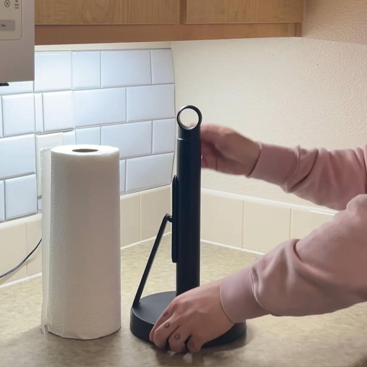- Single-Handed Tear with Tension Arm: The unique spring arm provides just the right amount of tension, preventing the paper towel roll from unrolling or blowing away. Enjoy the convenience of tearing off one or multiple sheets with just one hand.
