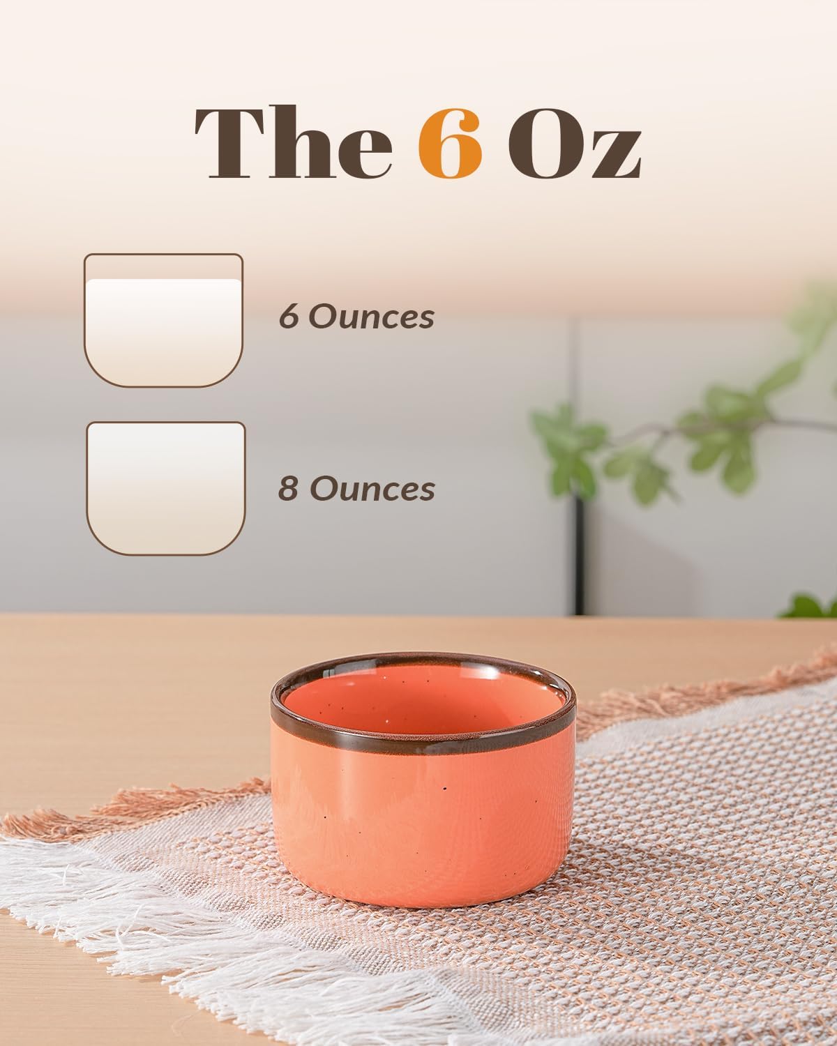 Juimma Ramekins 6 oz, Creme Brulee Ramekins Oven Safe, Ramiken Small Bowls Ceramic Baking Dishes for Pudding Custard, Dipping Sauce Cups for Souffle Ice Cream, Set of 6, Morandi Color