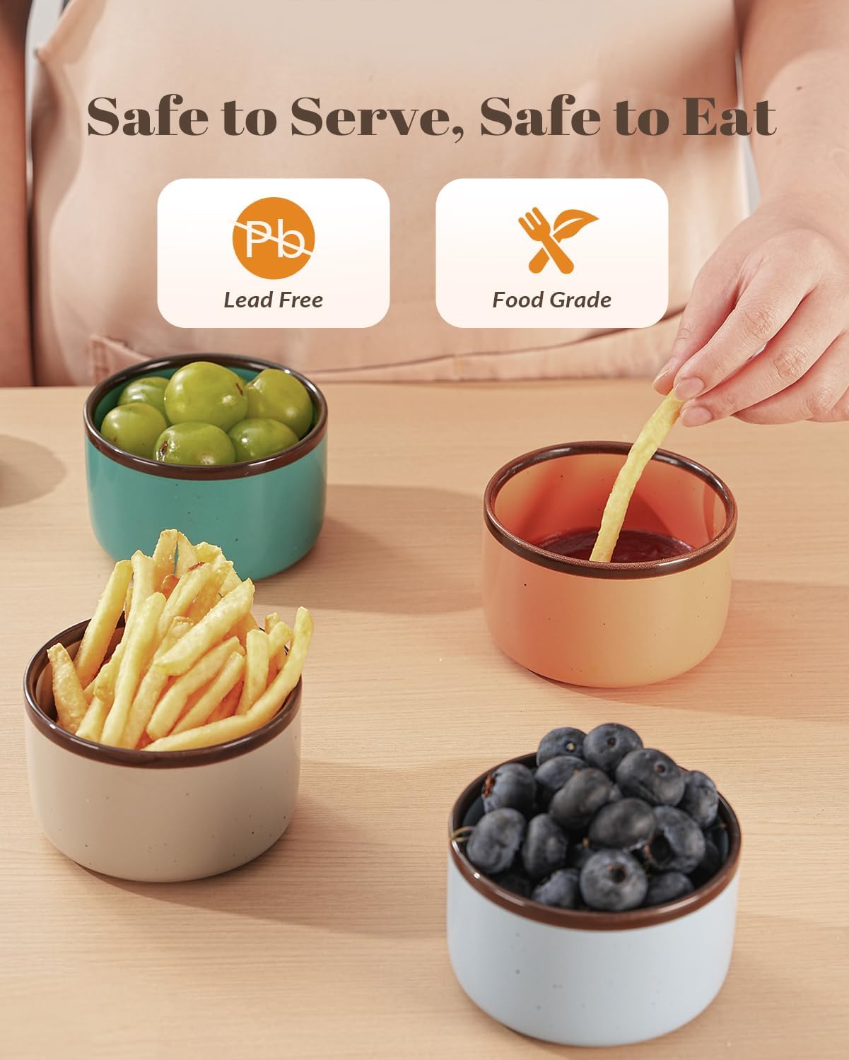 - LEAD FREE NATURAL GLAZE - Our ceramic ramekins features a lead-free, all-natural glaze, ensuring a smooth surface that is safe for daily use. You can rest assured that you don't have to worry about lead leaching into body and causing harm.