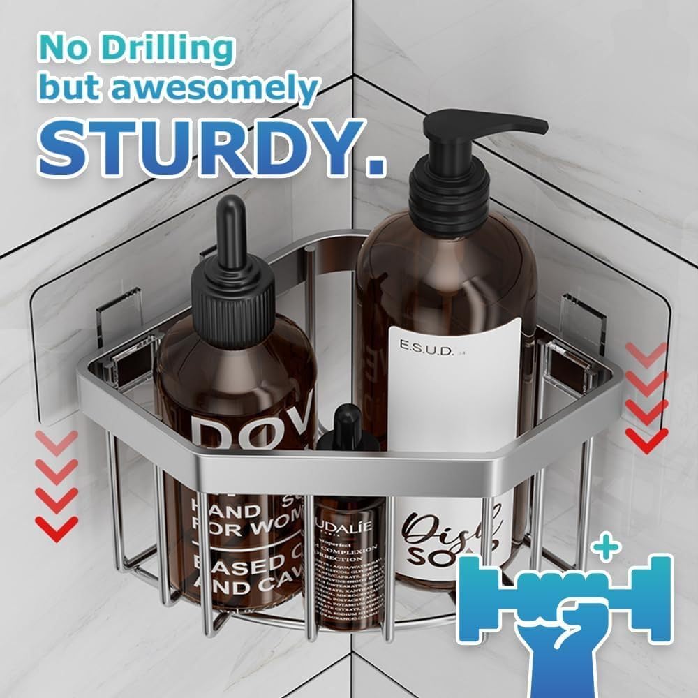 Sponge Holder Corner Sink Caddy Sink Organizer for Kitchen Bathroom Stainless Steel Triangle Soap Holder with 2 Pcs Adhesive Hook(L)