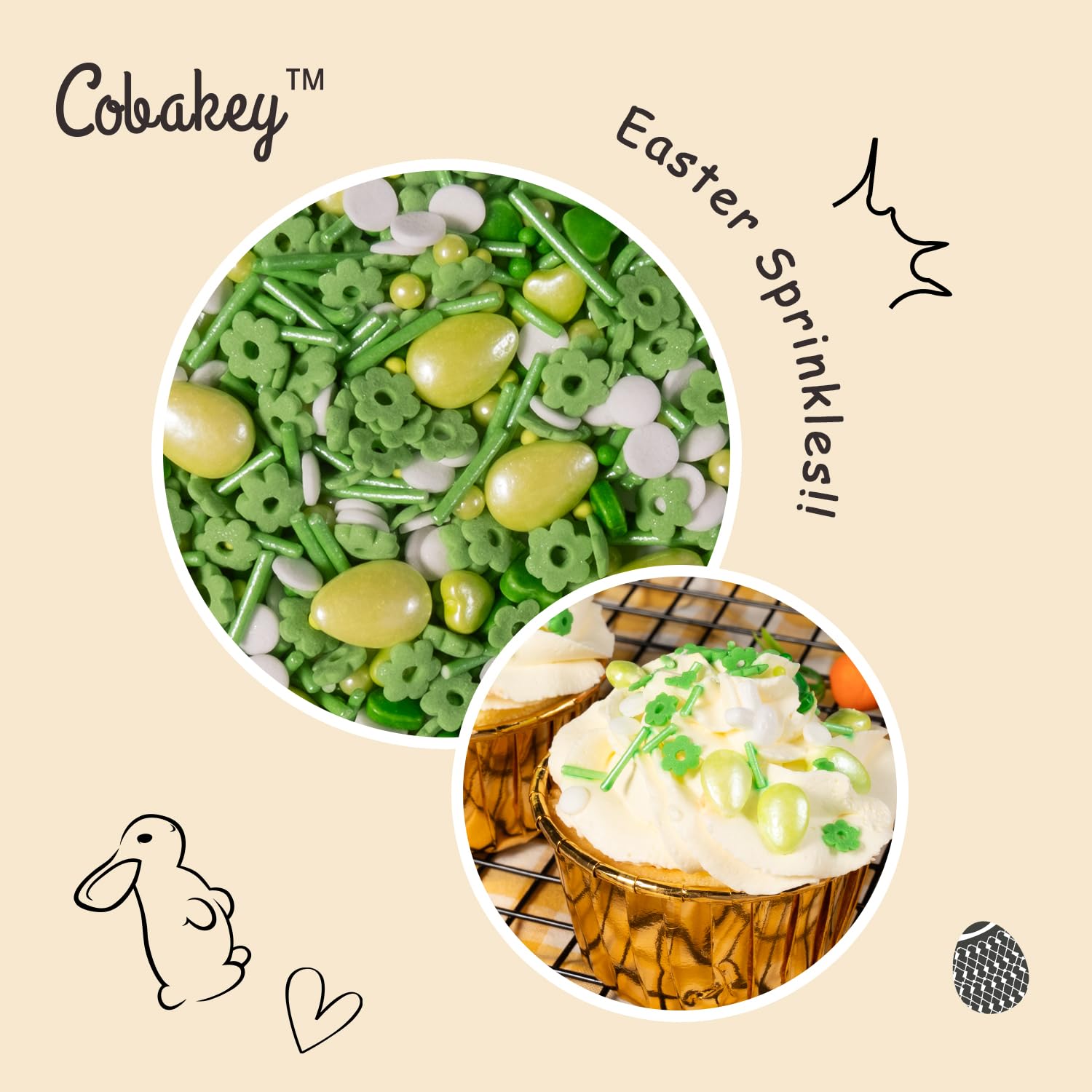 Cobakey Easter Sprinkles for Cookies 4.23 Ounce Spring Sprinkles for Baking Green Easter Eggs Perfect for Easter Cake Decorations, Baking, Ice Cream, Cookies, Cupcake Topper