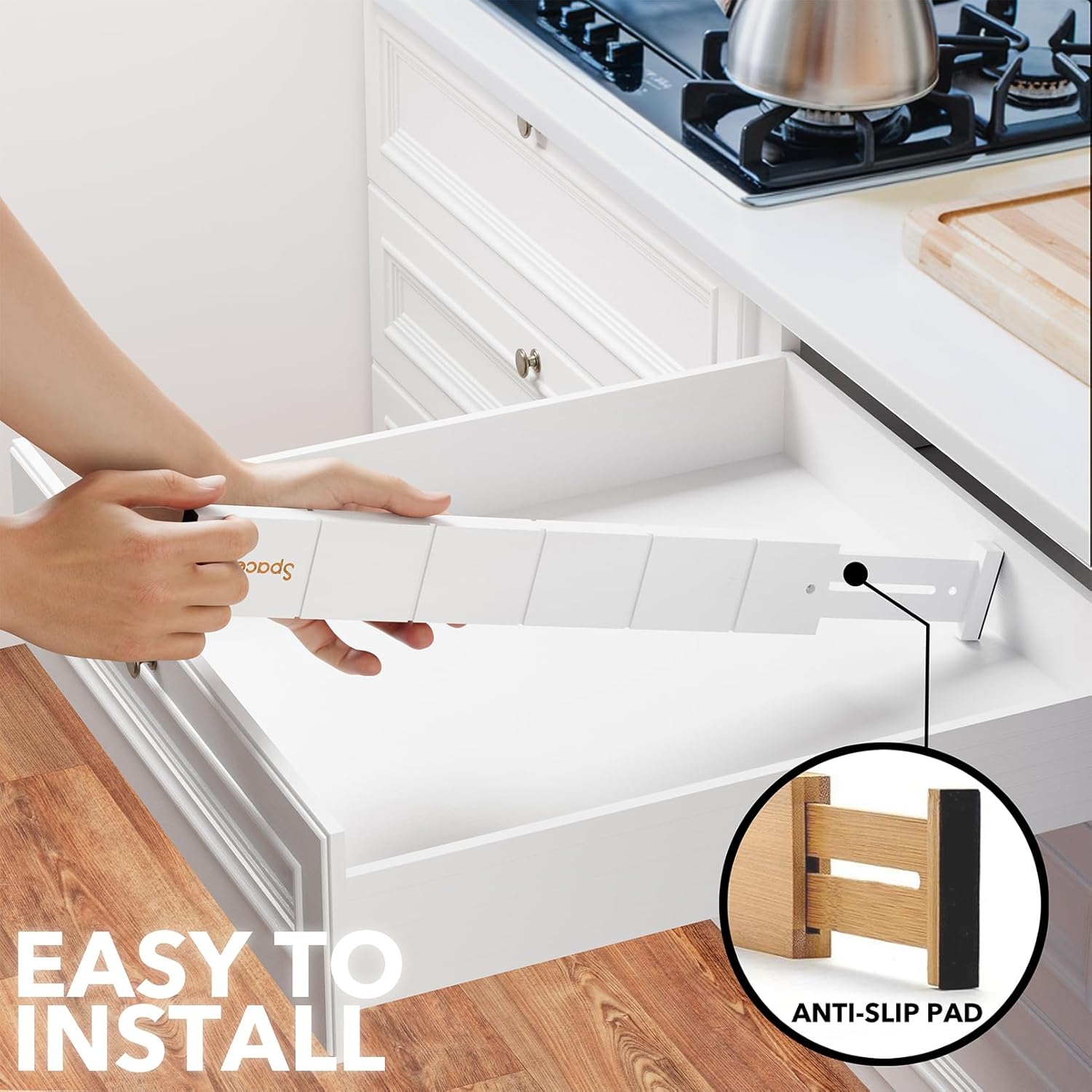 - Drawer Dividers That Stay in Place: Strong spring-loaded design makes them sturdy dividers, with non-slip rubber pads in the end, keeping it stay put all the time and protect your drawers from scratches