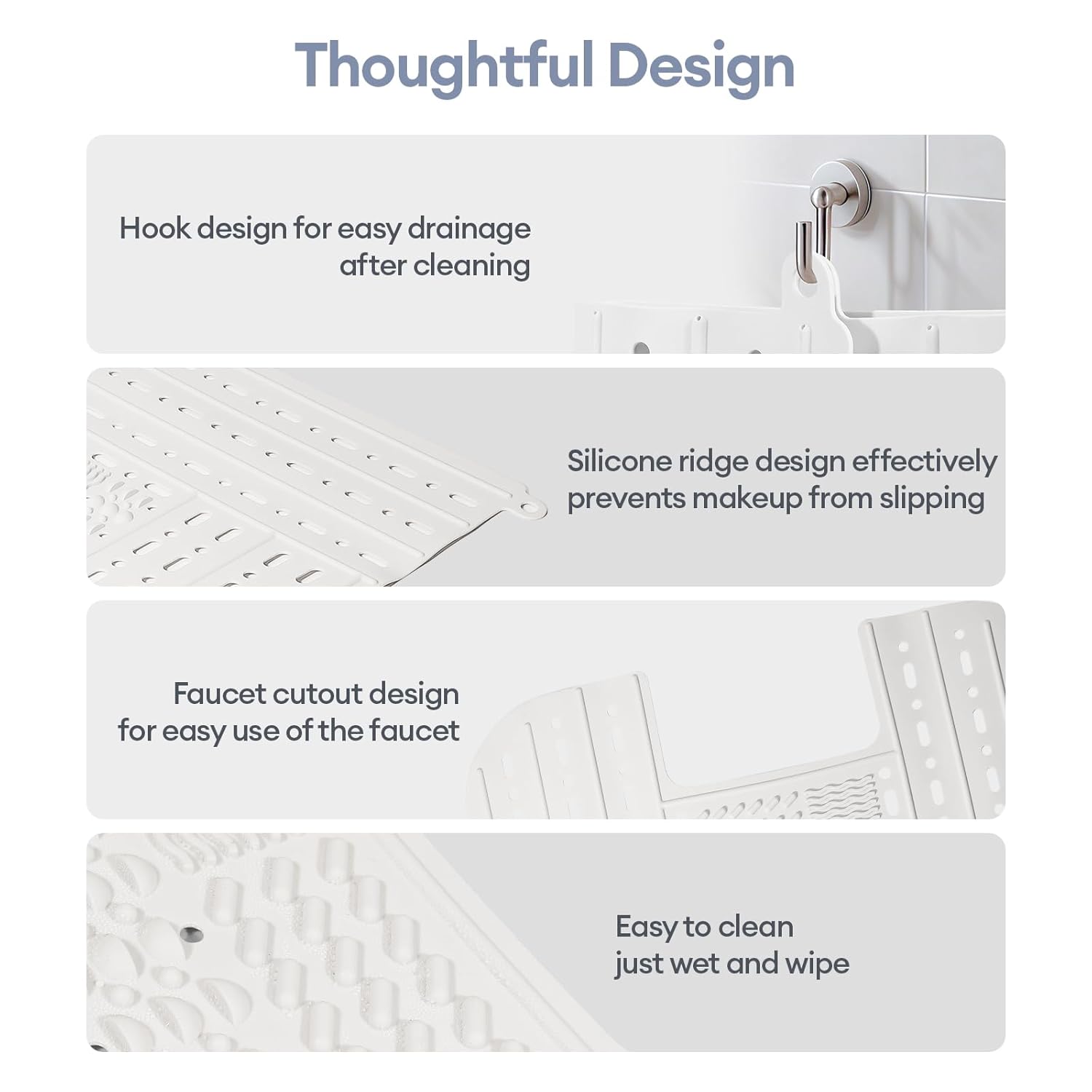 IeBilif Bathroom Sink Cover for Counter Space, Foldable Sink Covers, Makeup Organizer Mat Space Saver with Hanging Loop, Silicone Makeup Brush Cleaner Mat for Bathroom(White)