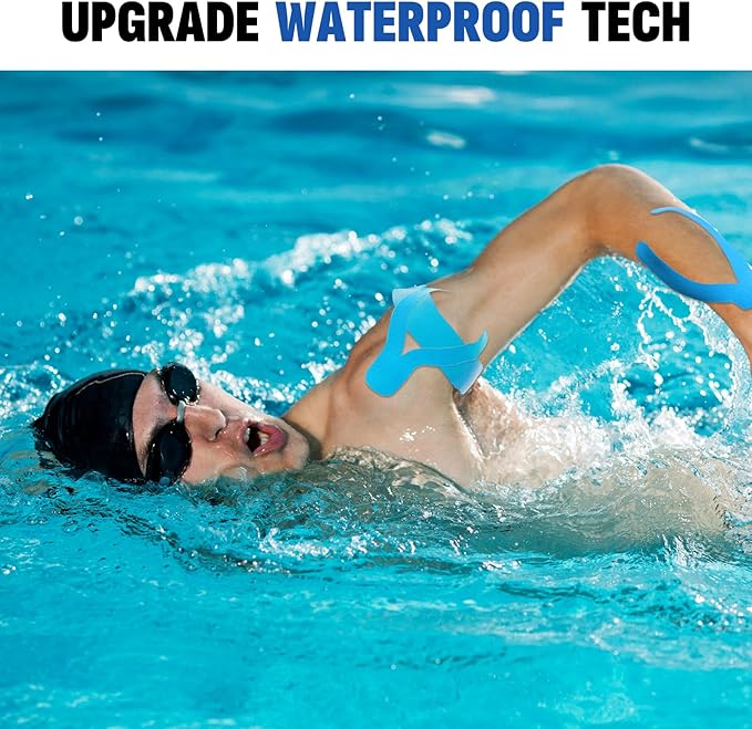 - 【Waterproof Kinetic Tape】We have upgraded the cotton material and adhesive of the kinetic tape, and adopted a unique water ripple design to make our muscle tape water resistant and sweat resistant. They can stick tightly to the skin all the time, even after multiple sweating and showering, the tape remains securely in place