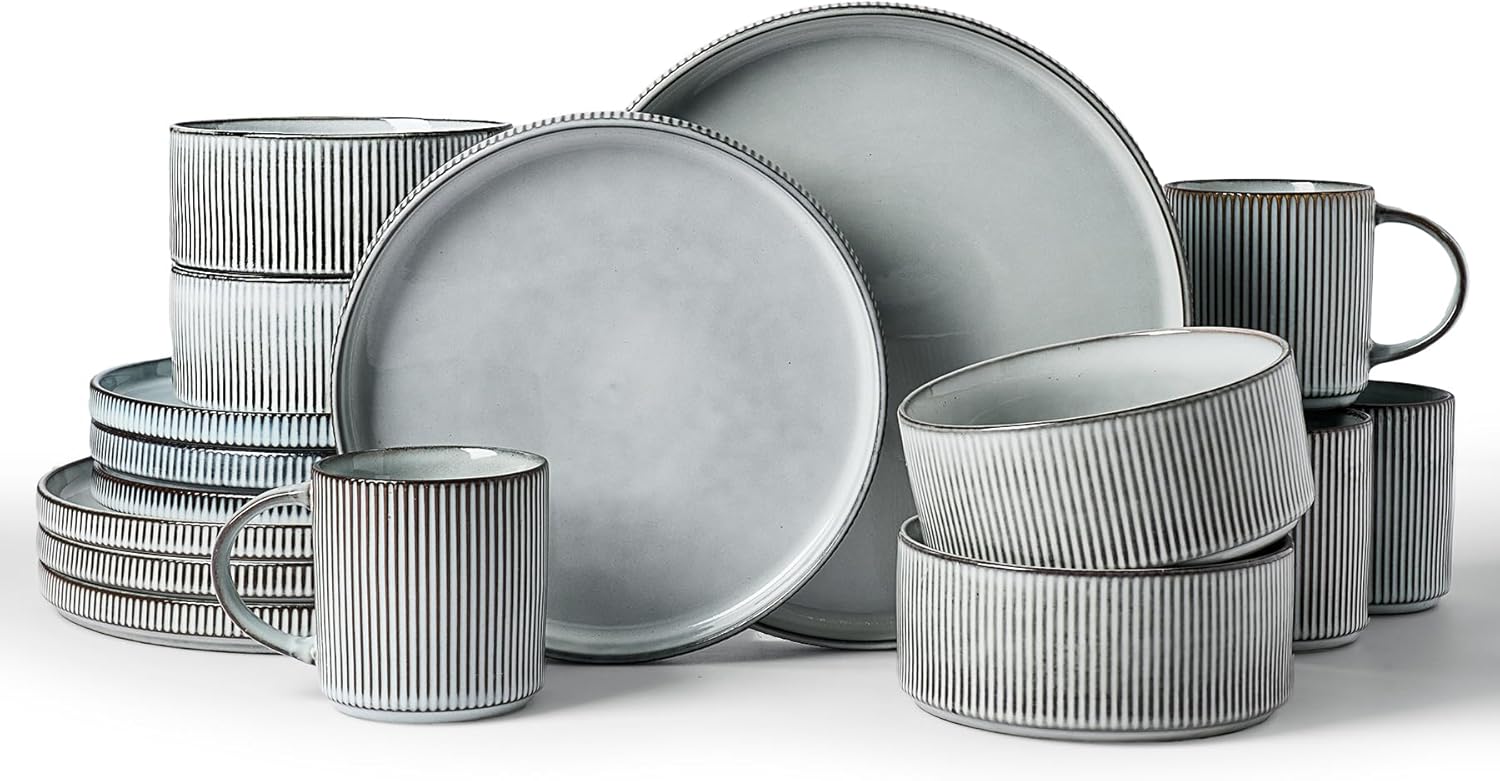 - [Stackable]: We are truly captivated by the design featuring vertical ribbed edges, but we also recognize the importance of optimal stacking. To address this, we have incorporated precision grooves at the base of this dish set, ensuring smooth and secure stacking
