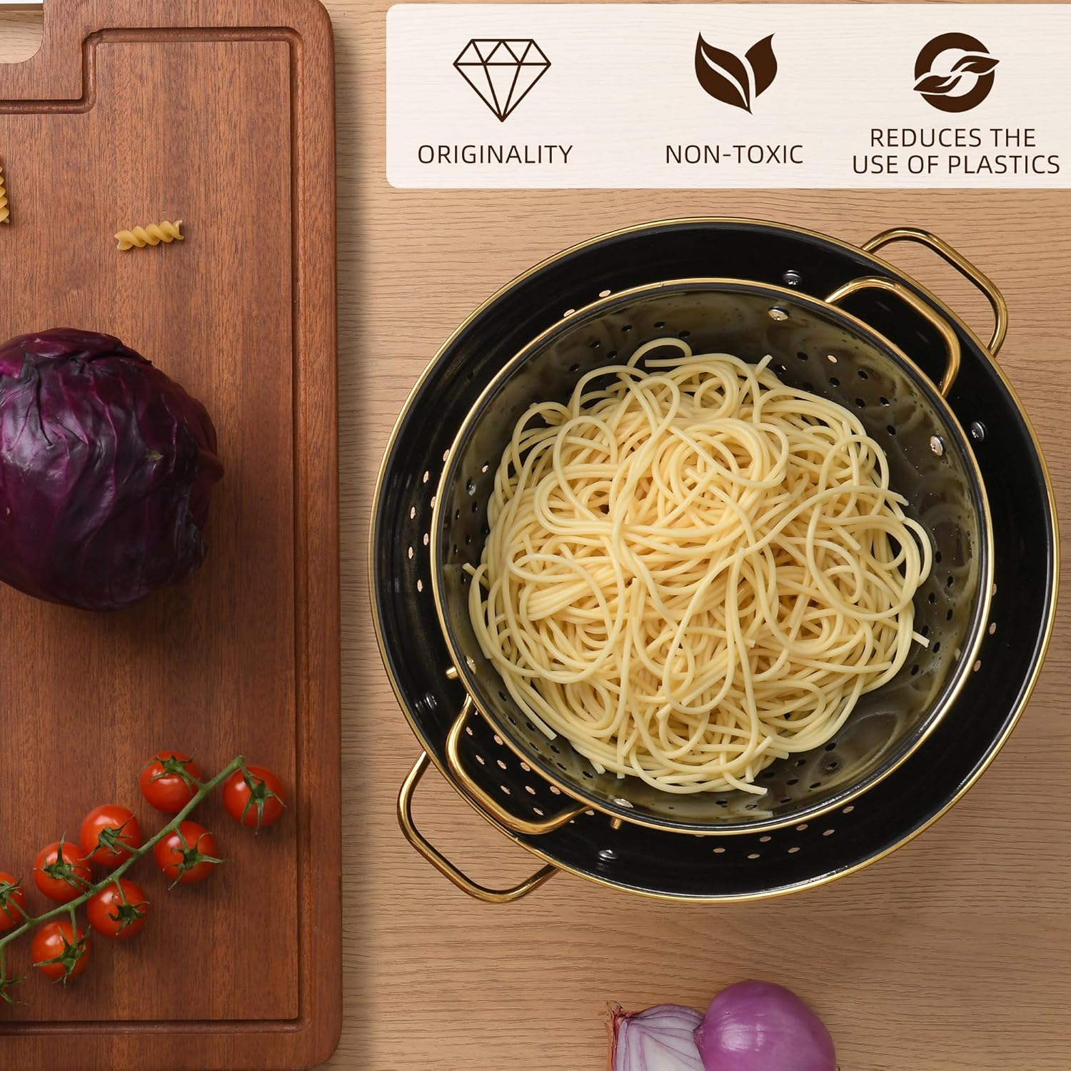 - (The colour is a glittery black, which is a very unusual colour and contains glitter, not a flaw!) 2 Different Sizes : BeFare kitchen colander set include 3-Quart and 5-Quart, it's available for daily and party use, and it could be a good decoration as well.