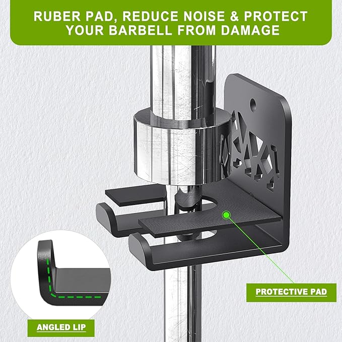 - Protective Features: All hooks are properly spaced to avoid overlapping, protecting your equipment and rack from scratches. Rubber protective pads have been added to the hooks to reduce noise and protect your barbell from scratches