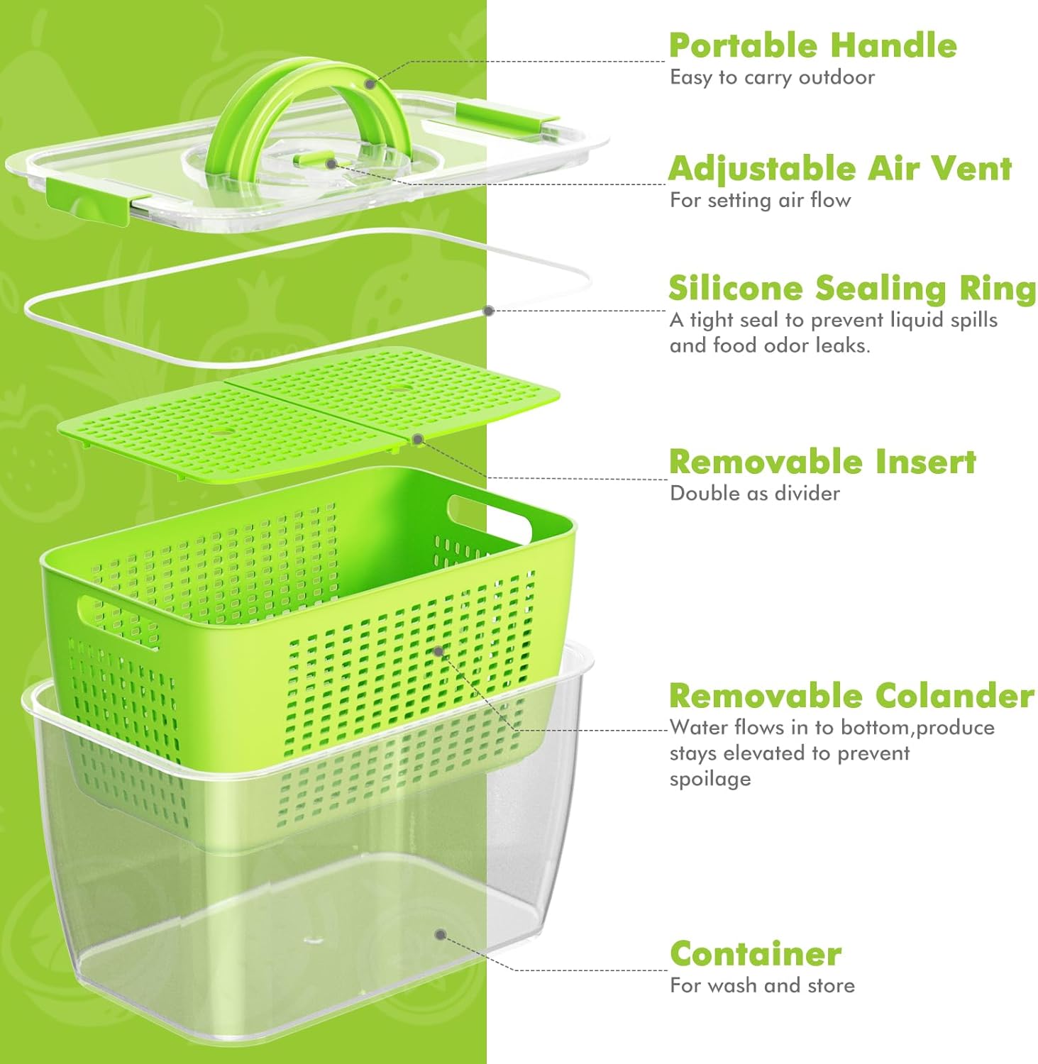 - 【Portable and Durable】: The thoughtfully portable handle of the Produce Storage Containers is ergonomically designed for a comfortable grip. Whether it's for outdoor picnics, camping, or carrying meals during daily commutes, you can easily pick it up. Made of high - quality durable materials, our food storage containers has good toughness and impact resistance, able to withstand various bumps and impacts in daily use and is not easy to damage over long - term use, being a reliable helper in your life.
