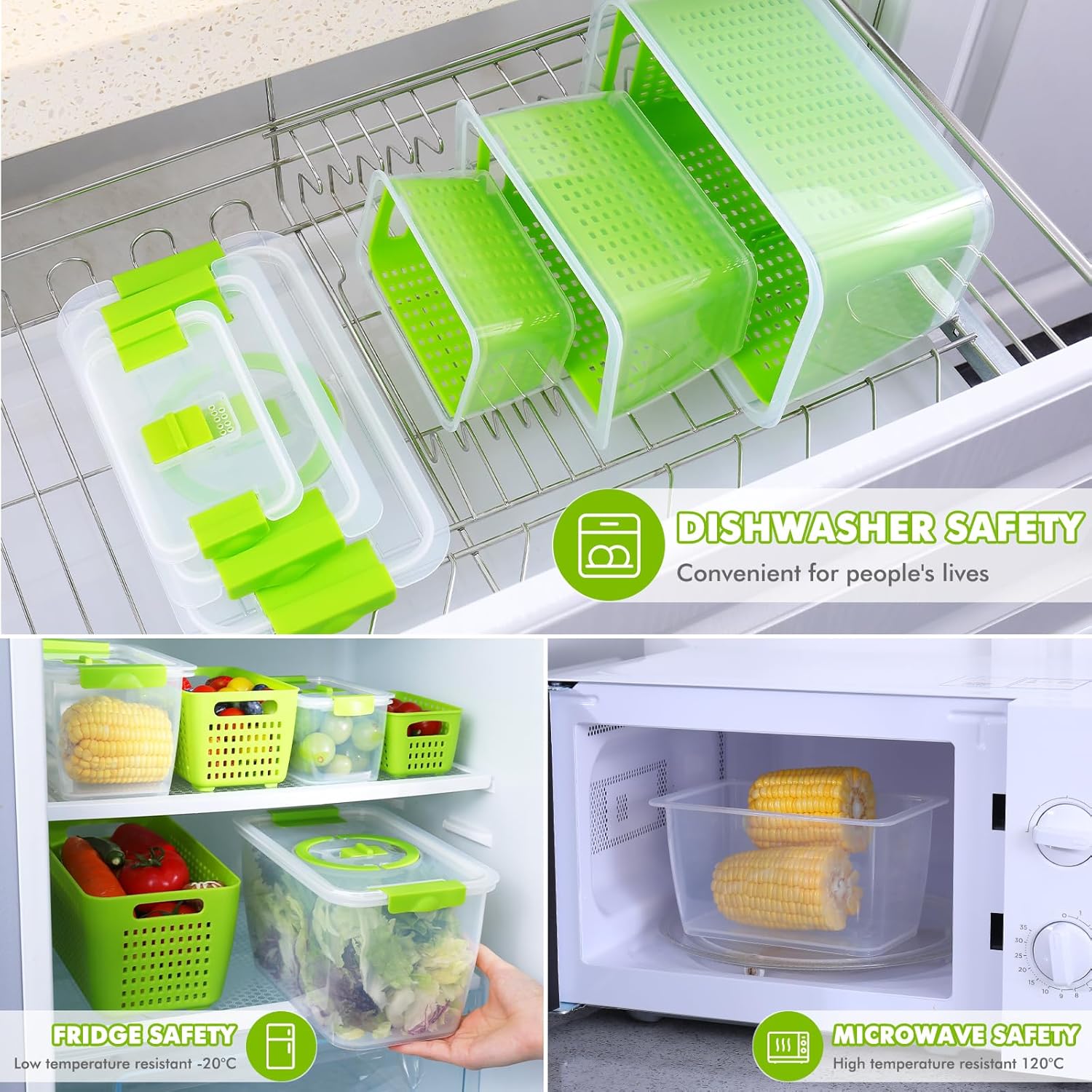- 【All - in - One Multifunctional Design】: This storage saver containers ingeniously integrates the functions of washing, draining, and storing. The detachable colander effectively prevent food from spoiling due to water accumulation. The transparent container not only allows for easy viewing of the internal ingredients but can also be directly used for washing and storing. Whether dealing with fresh fruits and vegetables or storing leftover ingredients, the fridge produce containers can handle it with ease, bringing great convenience to your kitchen life.