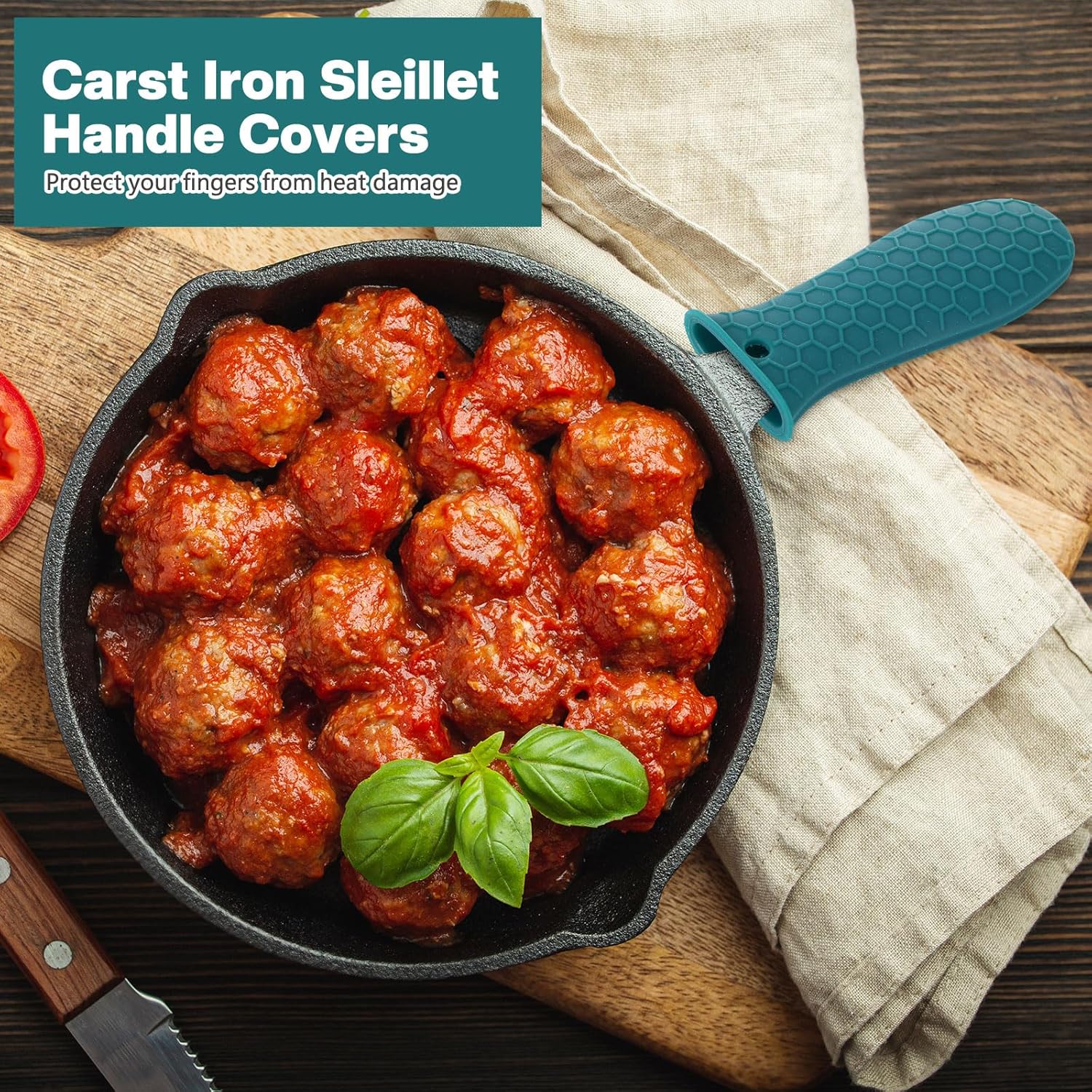Patelai 8 Pcs Silicone Pot Holders Set Cast Iron Handle Cover Heat Resistant Pot Handle Covers Potholder Non Slip Reusable Pan Sleeve for Frying Pan Kitchen Supplies(Green)