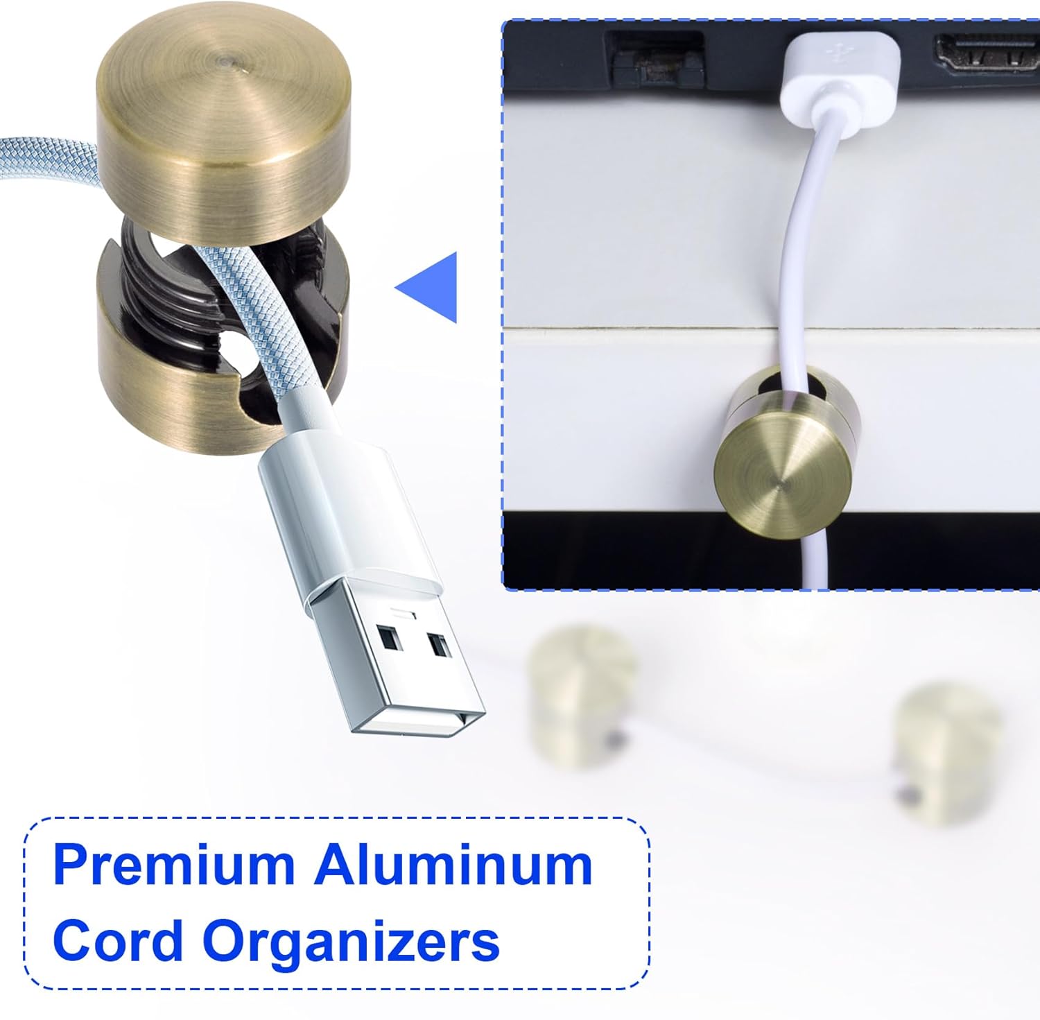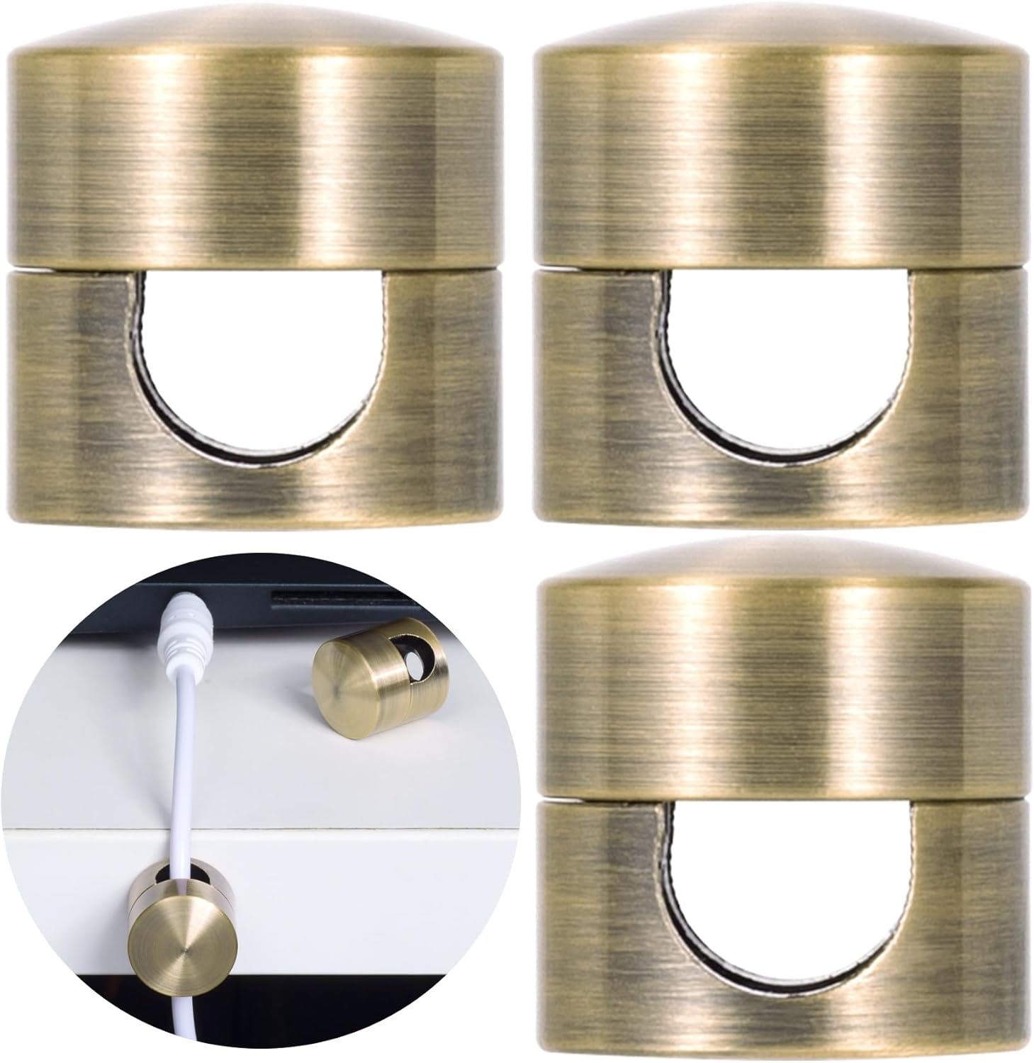 - Easy to Use: The package includes 3 stickers for using. You just need to clean the surface that you are going to attach the cord anchor to, then stick the antique copper cord holder on the surface with glue stickers, and thread the cable from the hole to keep it organized