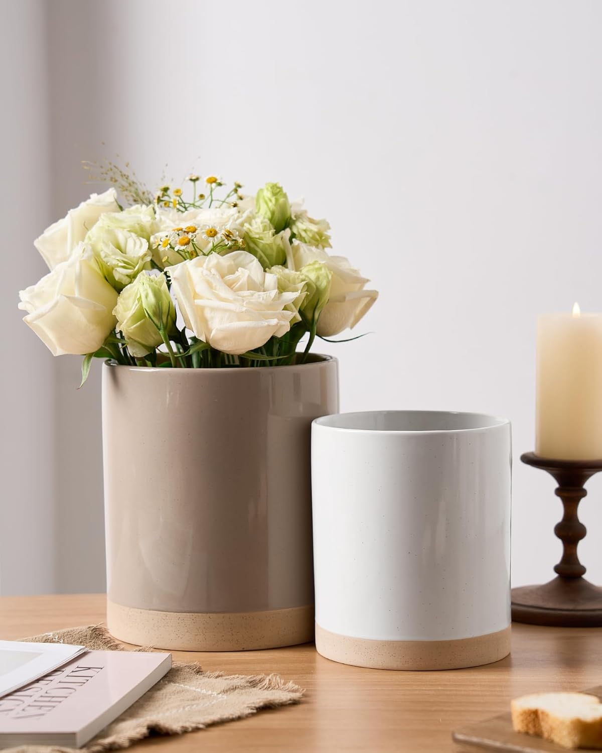 famiware Milkyway Kitchen Utensil Holder for Countertop, Ceramic Cooking Utensil Crocks for Kitchen Counter, Utensil Organizer for Spatula & Spoon, Set of 2, Cinnamon Brown and White
