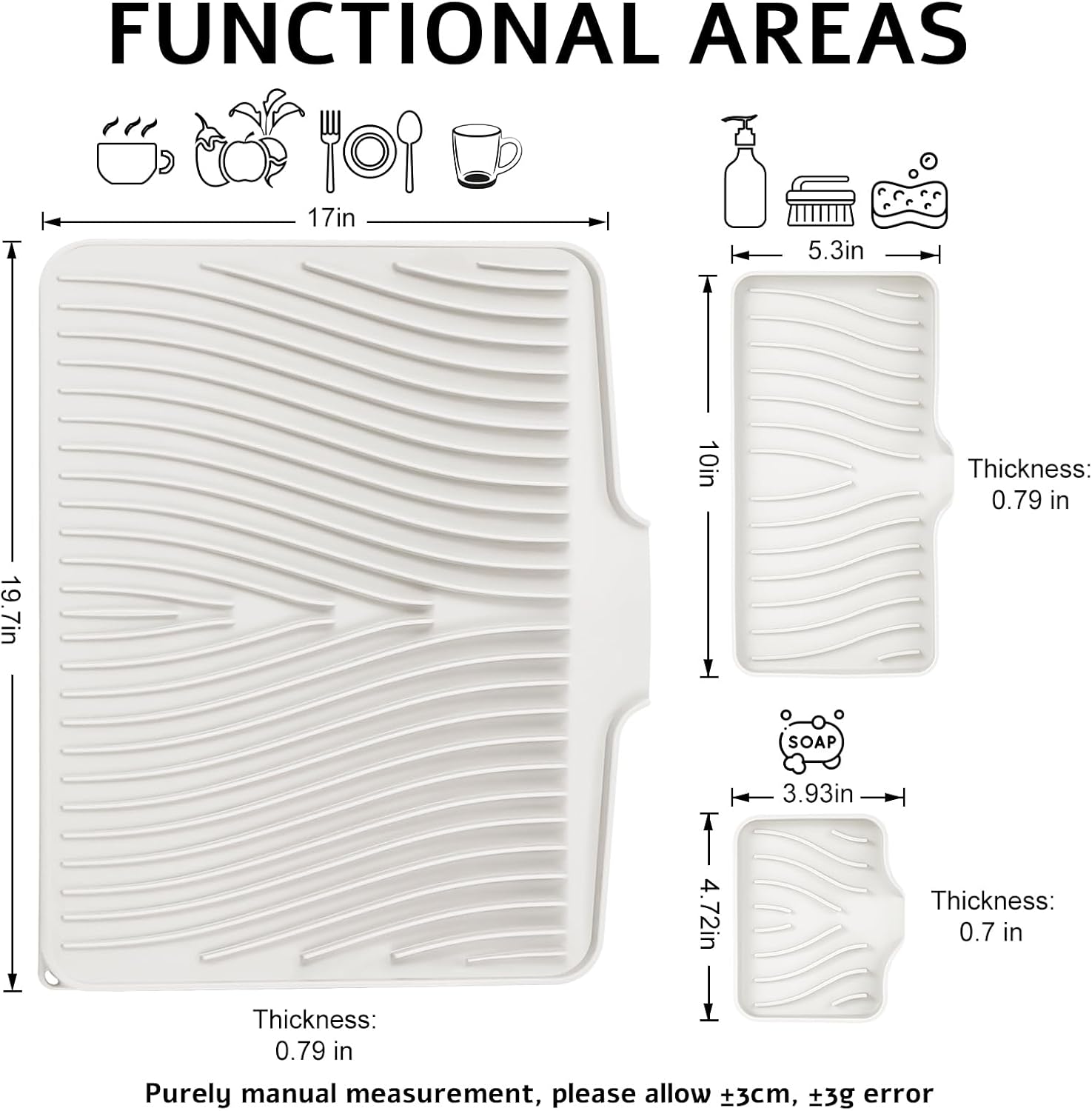 Silicone Dish Drying Mat for Kitchen Counter, Dish Drying Pad, Non-Slip Drain Pad with Built-in Drain, Heat Resistant Stone Drying Mat, 1 set XL(Cream)