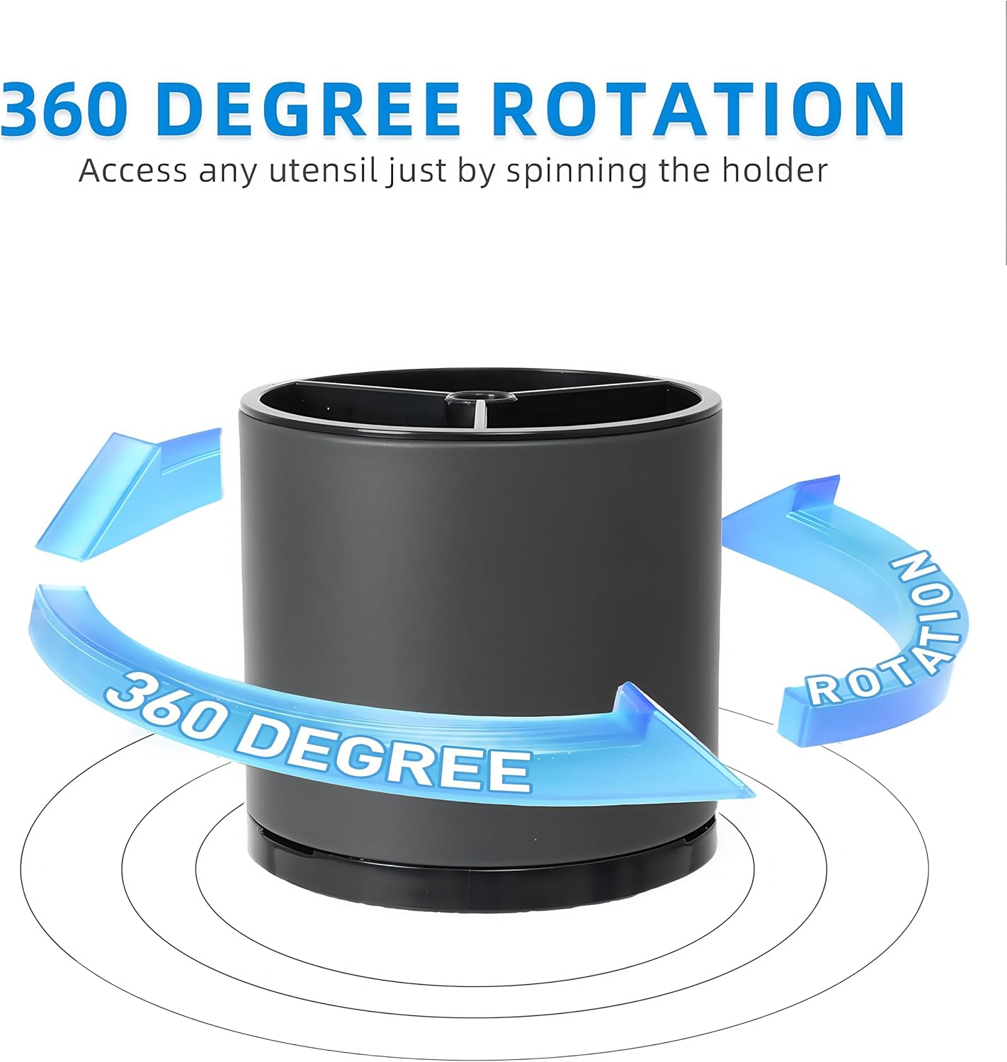 - Smooth 360° Rotation: Experience unparalleled convenience with our smooth-gliding, 360-degree rotation feature. Simply spin the holder to access any utensil you need, eliminating the frustration of searching through a tangled mess. This innovative design ensures that your utensils are always within easy reach, making your kitchen tasks more efficient and enjoyable.