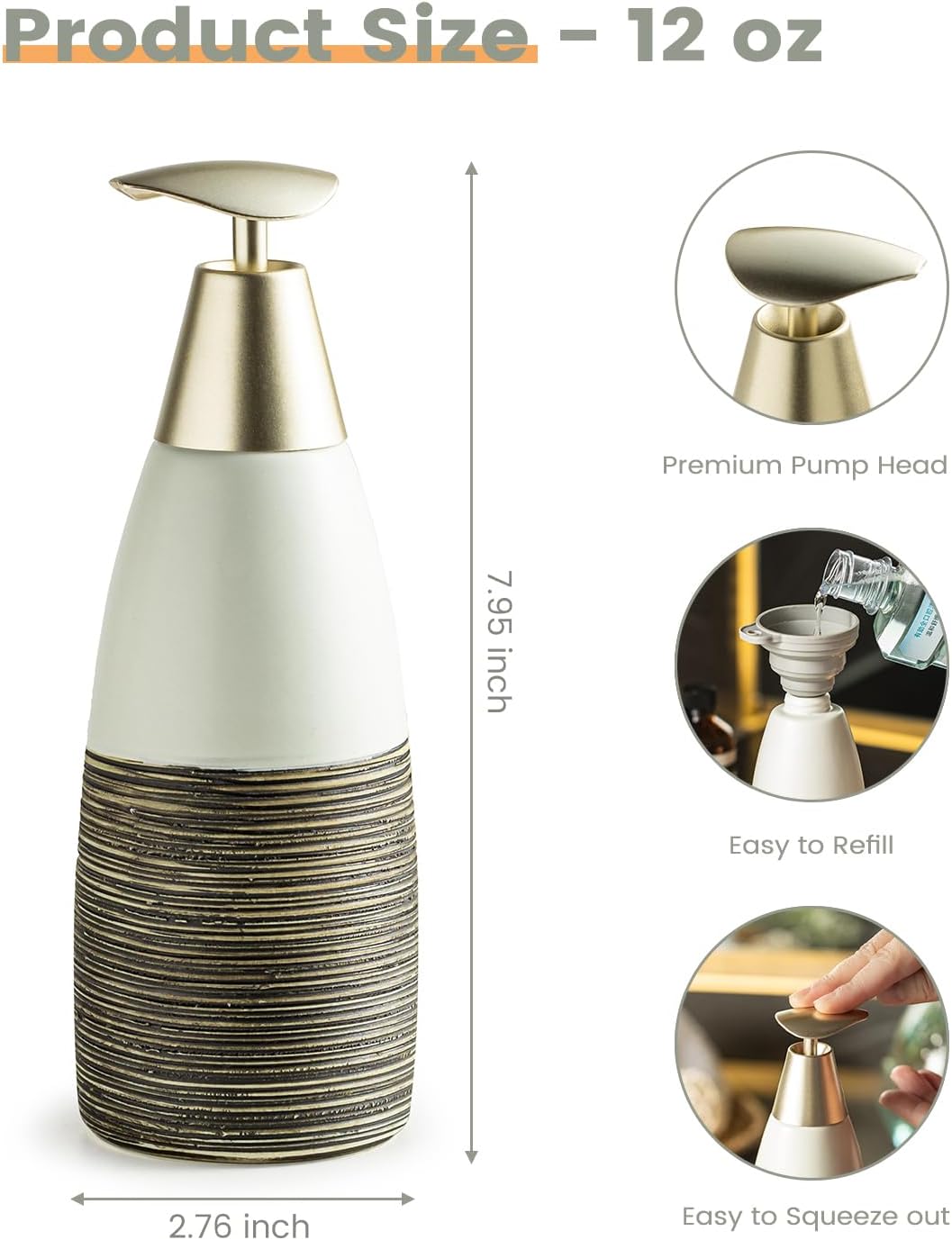 - 12oz Capacity: Ideal for daily use, the 12oz capacity means fewer refills and more convenience, meet the needs of any household, from bathrooms to kitchensand making this dispenser a practical addition to your home