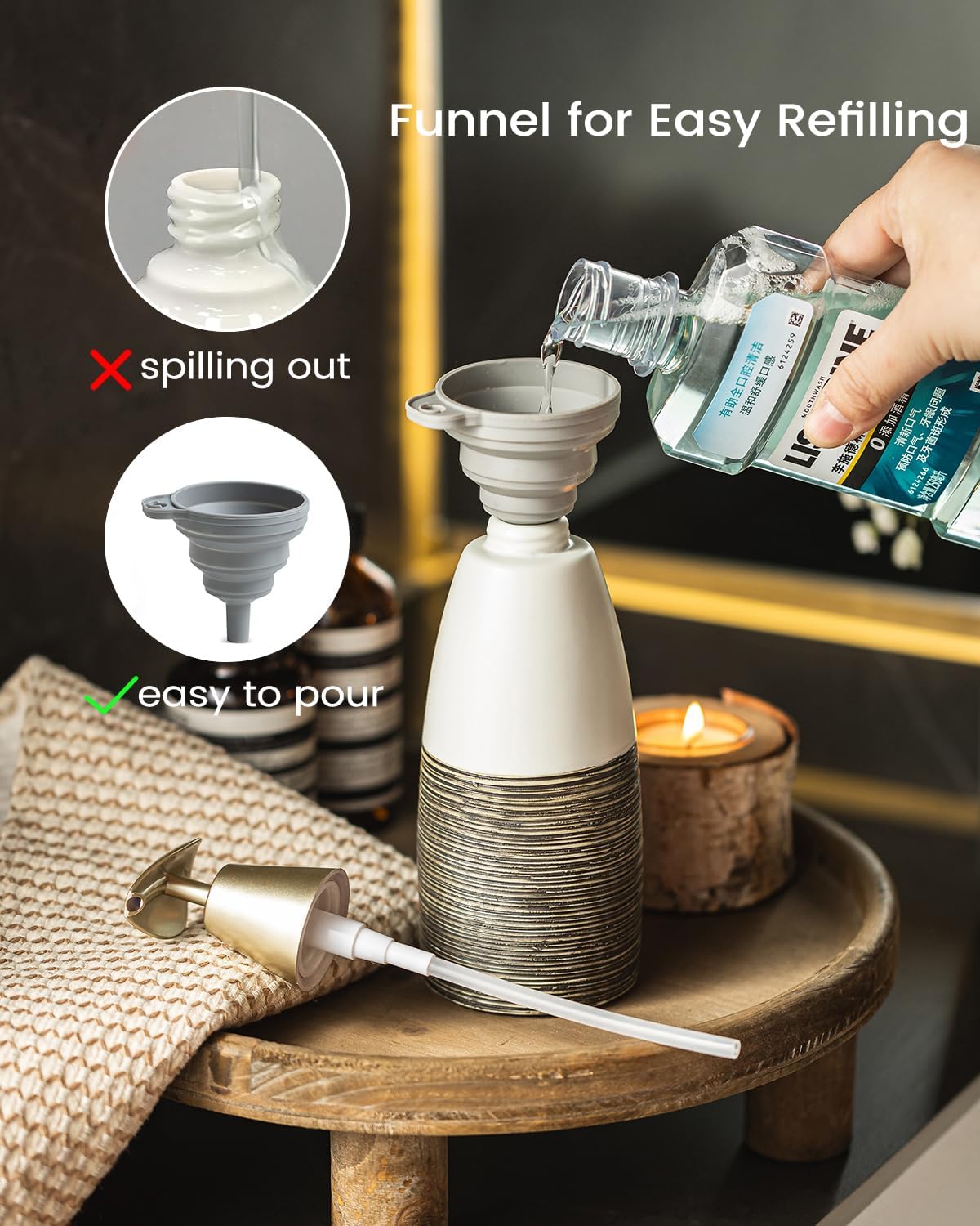 - Easy to Refill: Comes with a funnel for easy liquid filling. Whether you use it for soap, lotion or hand sanitizer, you don't have to worry about spills or waste when filling