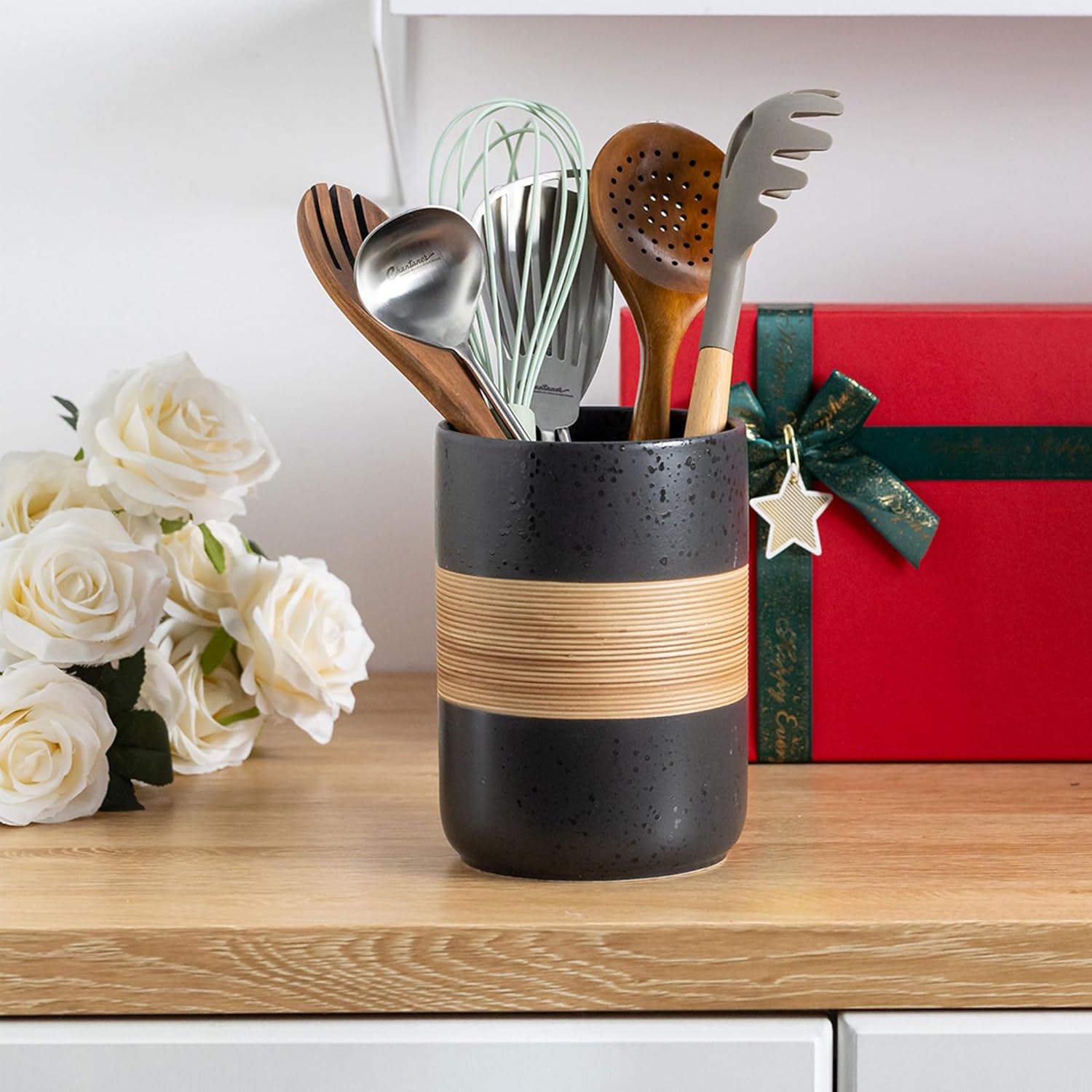 Large Storage Containers with Lids, Ceramic Coffee Container Kitchen Food Storage Jars for Spice Sugar Tea Bag, Stackable Decorative Jars for Counter, Black & 61oz