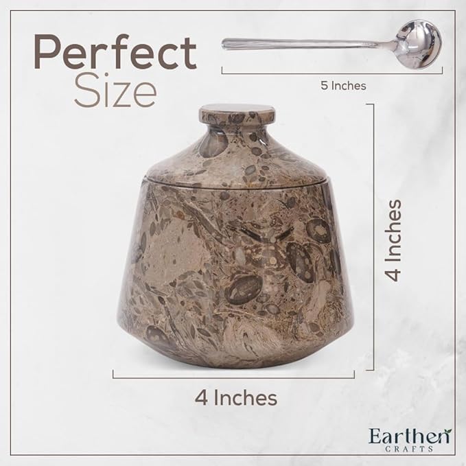 - What's In It: 1 x Marble Salt Cellar with lid and spoon. Comes along with Earthen Crafts branded, secure and fragile packaging.
