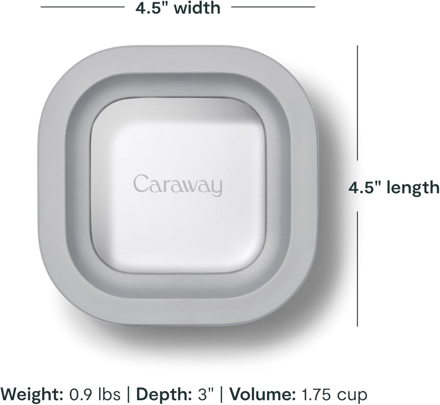 Caraway Mini Square Food Storage Container - 1.75 Cup Glass Storage Container for Food - Non-Toxic Ceramic-Coated Glass - Air Release Technology - Compact & Stackable Design - Gray