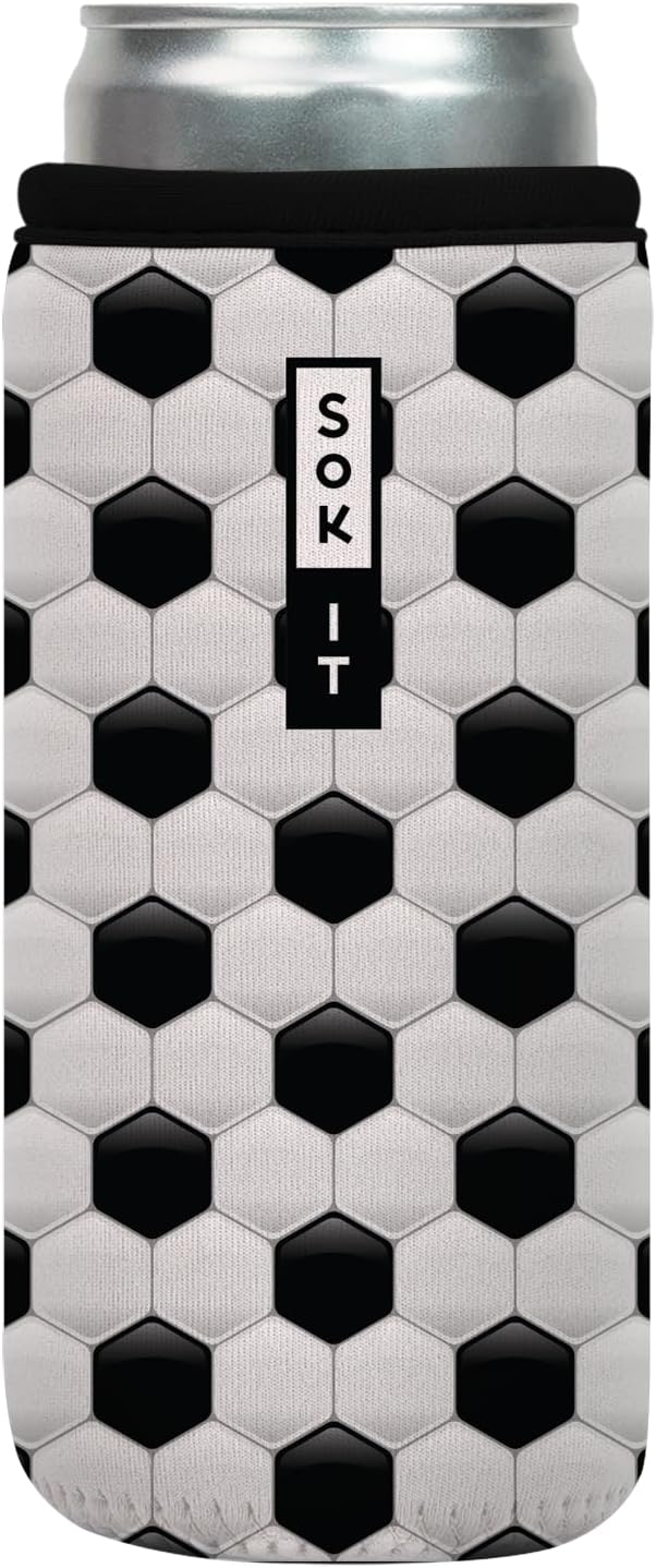 Sok It CanSok Sleeve for Beer & Soda Insulated Neoprene Cover (Soccer, 12oz Slim Can Sleeve)