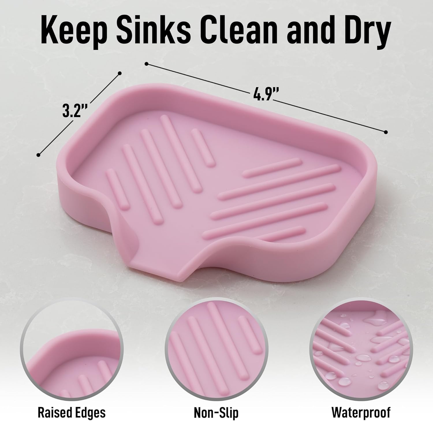 - MESS-FREE COUNTERTOPS: Keep your sink area tidy and free from soap residue with our small silicone sponge holder. Measuring 4.9 x 3.3 inches, this compact tray is ideal for holding a sponge, scrubber, soap bar, or small brush. Its space-saving design is perfect for use in kitchens, bathrooms, laundry rooms, or vanities—great for organizing small essentials like jewelry, makeup, or accessories.