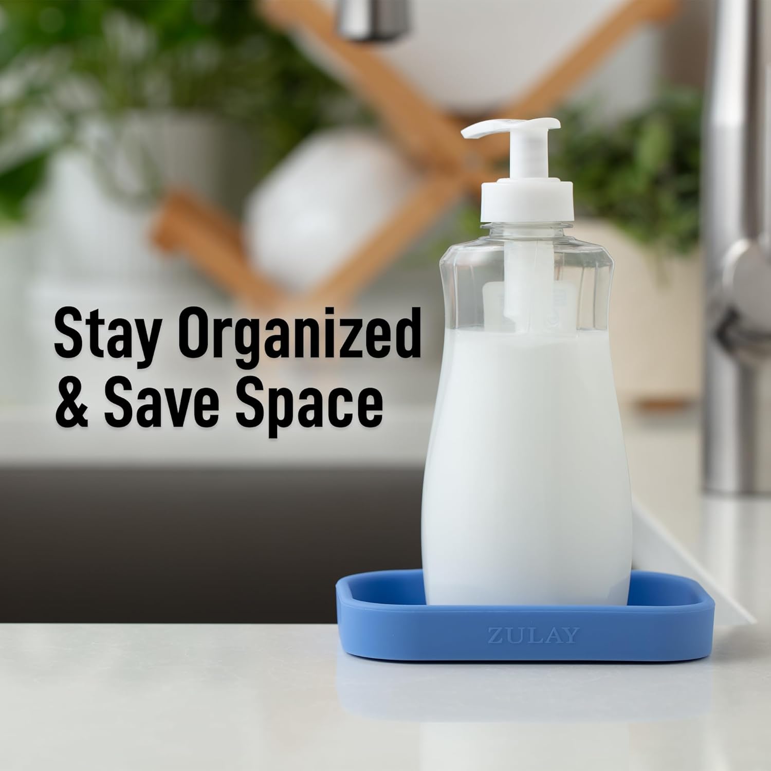 Zulay Kitchen Small Silicone Sponge Holder (4.9x3.3”) – Space-Saving Sink Organizer Tray for Sponge, Soap, Brush & More – Compact Non-Slip Dish for Kitchen & Bathroom (Provence Blue)