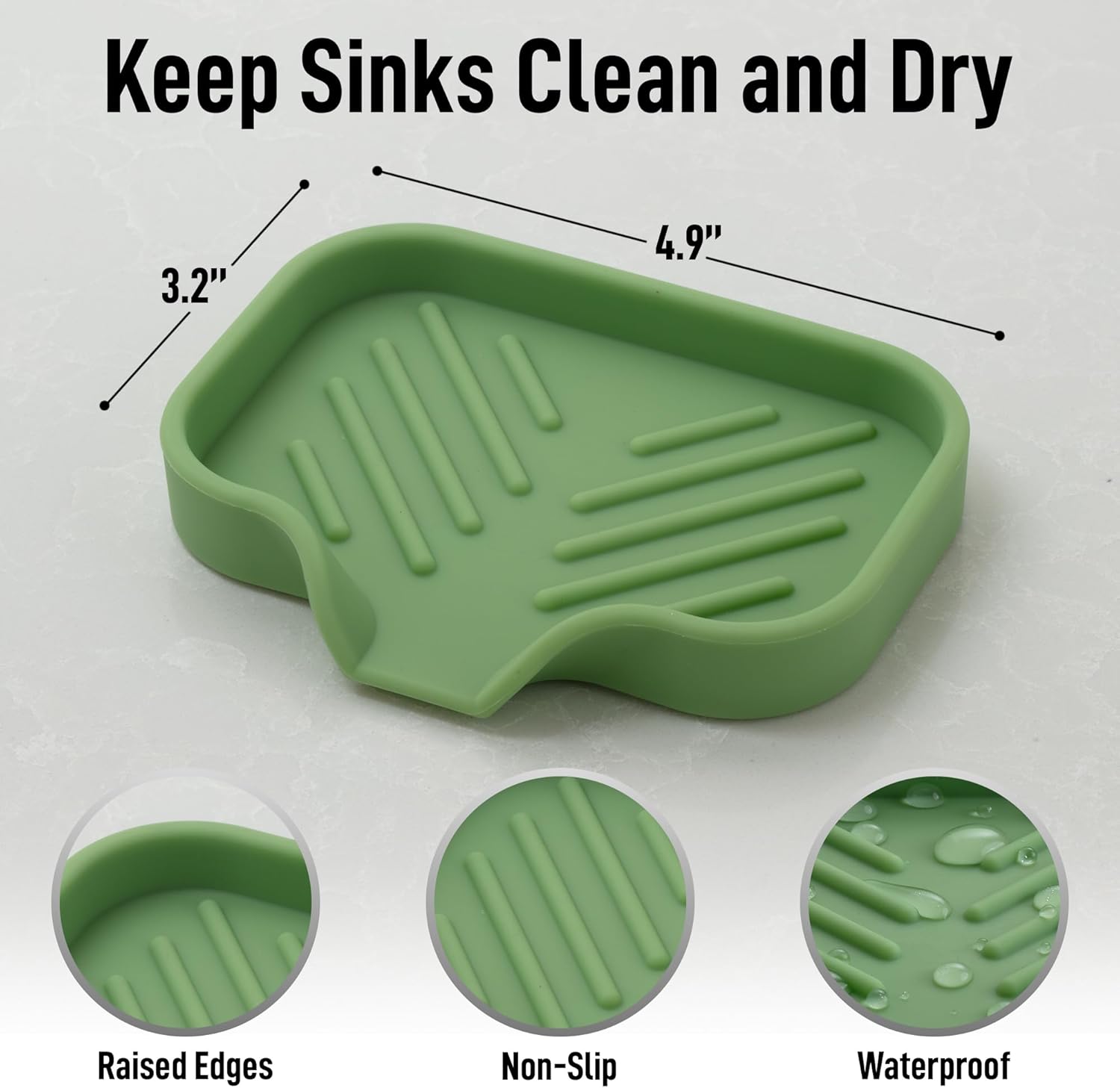 - ANTI-SLIP SILICONE: We have conveniently designed this sink tray with 18 raised ridges and elevated edges that prevent the overflow of water, helping to air-dry wet items better. Your dish sponges will last longer without that strong, musty odor with our silicone soap dish.