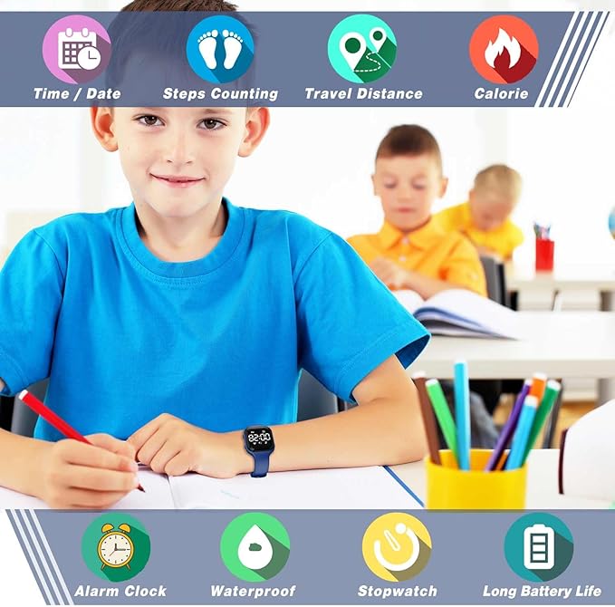 - Vibration Alarm Clocks: Watch support setting two sets of alarms at the same time. The built-in vibration motor, will wakes up the child by vibrating the wrist without disturbing others. Very suitable for students, children and teenagers.